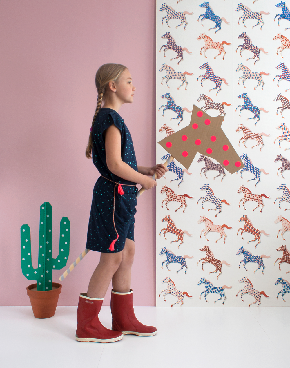 Studio Ditte kids wallpaper with elegant horses of paper for a cool girls room. Each horse has its own print and temperament. Horse wallpaper for the nursery specially designed for true horse girls.
