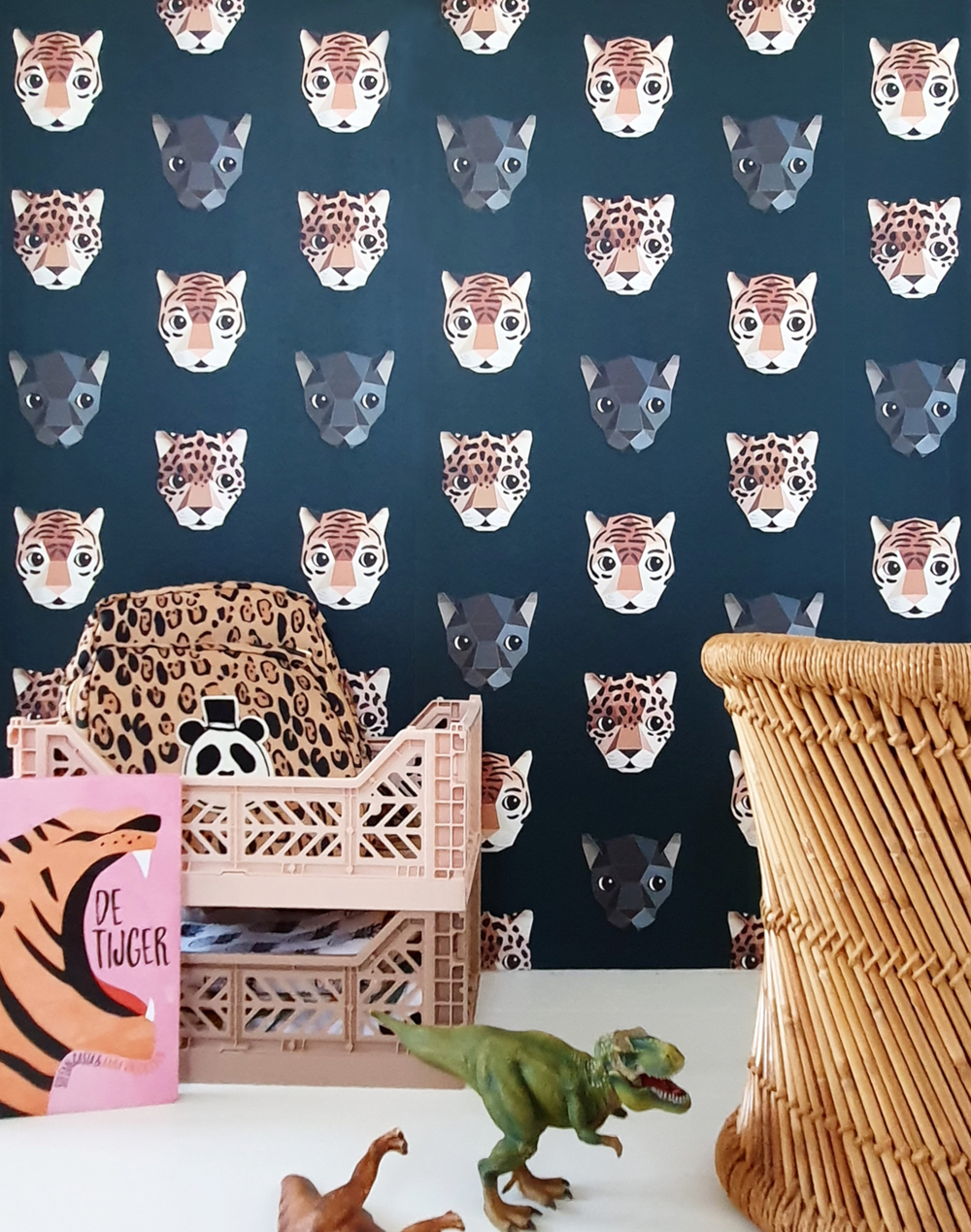 Fond of jaguars, black panthers and tigers, too? On the Studio Ditte panthera wallpaper you will find the characteristic heads of these hunters. These big cats hide deep in the jungle. The panthera wallpaper has warm natural colors and gives the children's room a cool look.