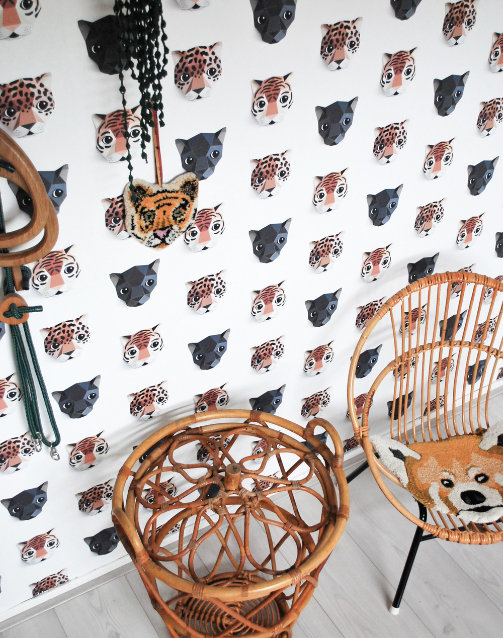 Fond of jaguars, black panthers and tigers, too? On the Studio Ditte panthera wallpaper you will find the characteristic heads of these hunters. These big cats hide deep in the jungle. The panthera wallpaper has warm natural colors and gives the children's room a cool look.