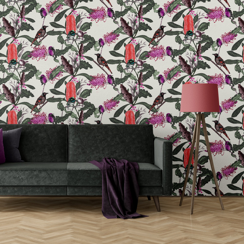 Our beautiful wallpaper is printed in Australia using our striking contemporary hand-drawn designs. Our most iconic design features the Callistemon species or more commonly referred to as bottlebrush because of their cylindrical brush like flowers resembling a traditional bottle brush. the plants are found in the more temperate regions of Australia.