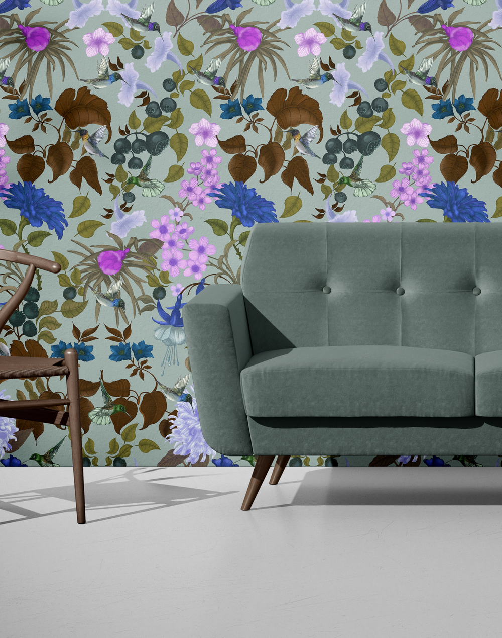 Our beautiful wallpaper is printed in Australia using our striking contemporary hand-drawn designs. The featured design is inspired by the Azure Kingfisher easily recognizable with a combination of brightly colored feathers, royal-blue plumage on its upperparts contrasting with orange on its underparts.
