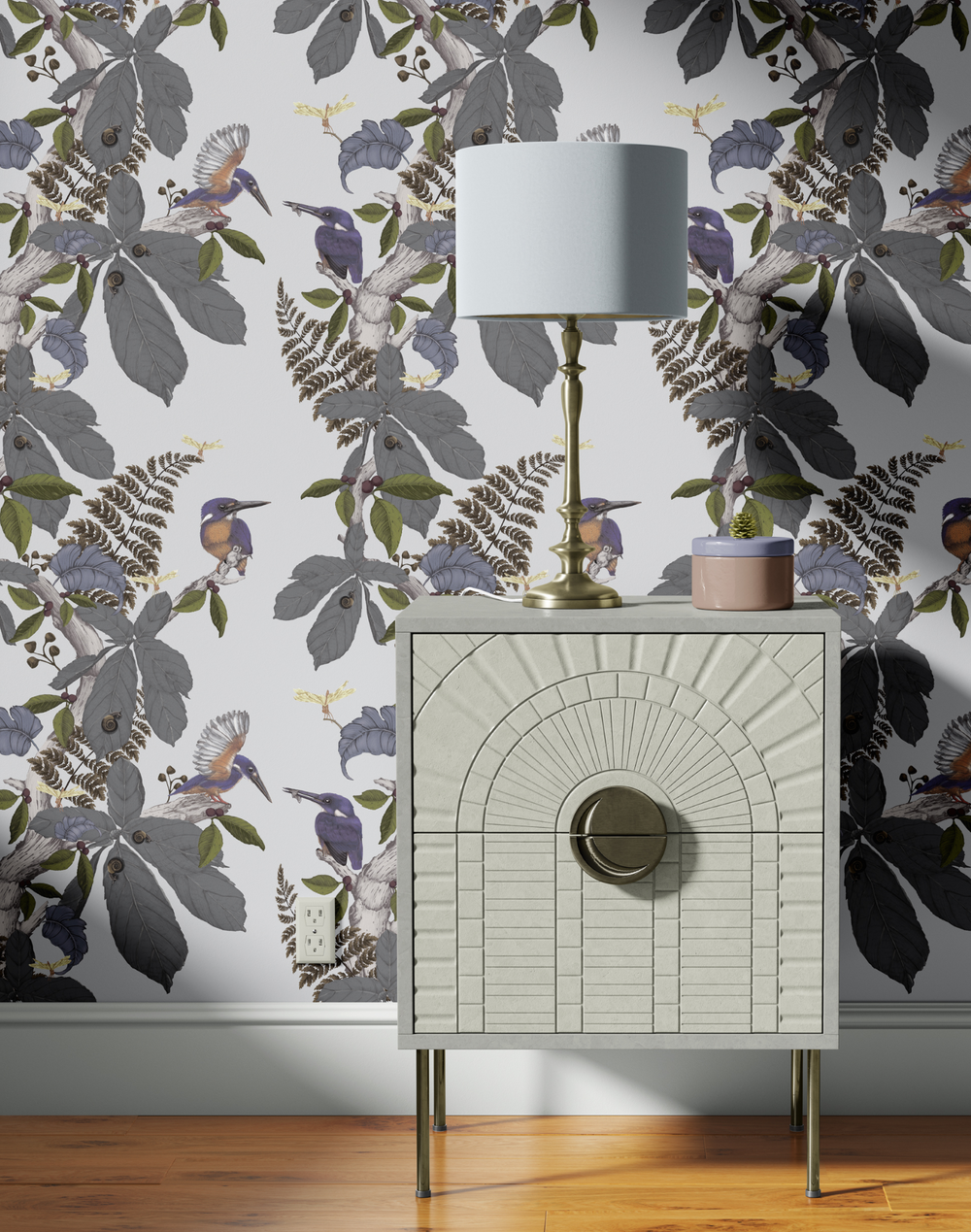 Our beautiful wallpaper is printed in Australia using our striking contemporary hand-drawn designs. The featured design is inspired by the Azure Kingfisher easily recognizable with a combination of brightly colored feathers, royal-blue plumage on its upperparts contrasting with orange on its underparts.