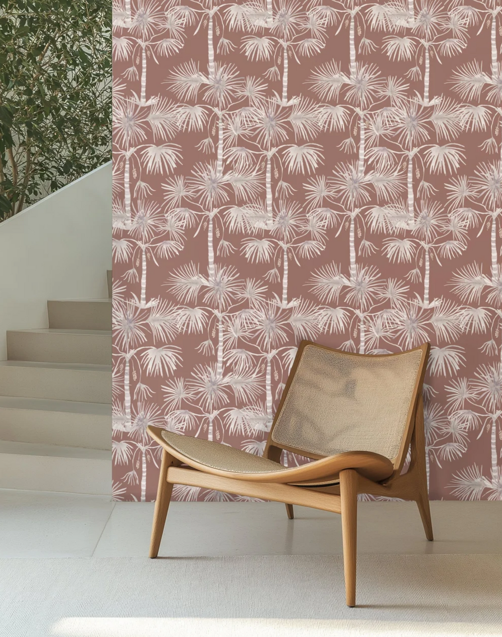 Our present day translation of the famous palm theme centers on the negative space between palm trunks, making interlaced lines that echo the striped surfaces of the trunks and dotted shapes of the palm tops. The result is a rhythmic, geometric pattern brought to life in a fresh palette of summer colors.