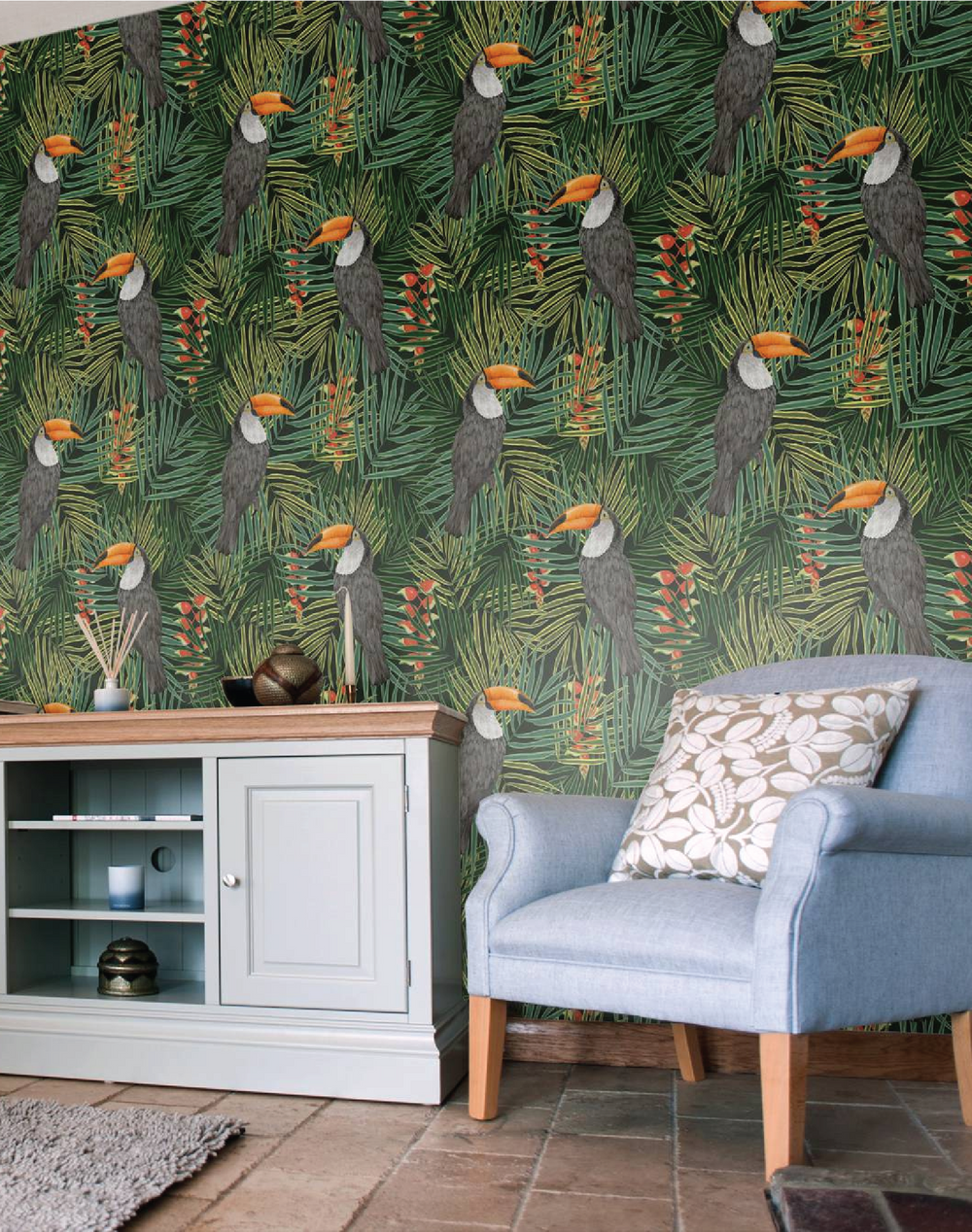 Alicia De Costa has always been highly influenced by nature and uses this as the main theme for most of her designs. A key inspiration behind this collection 'Birds In Paradise' came from her fascination of drawing tropical birds. She visited London Zoo to get a real insight into these beautiful birds and their surroundings making additional visits to the Pam House at Kew Gardens to see first hand the wonderful vibrant colors of tropical plants. Each image in the design has been carefully hand drawn with an intense focus on detail before adding a pop of color to produce a lush debut wallpaper collection.