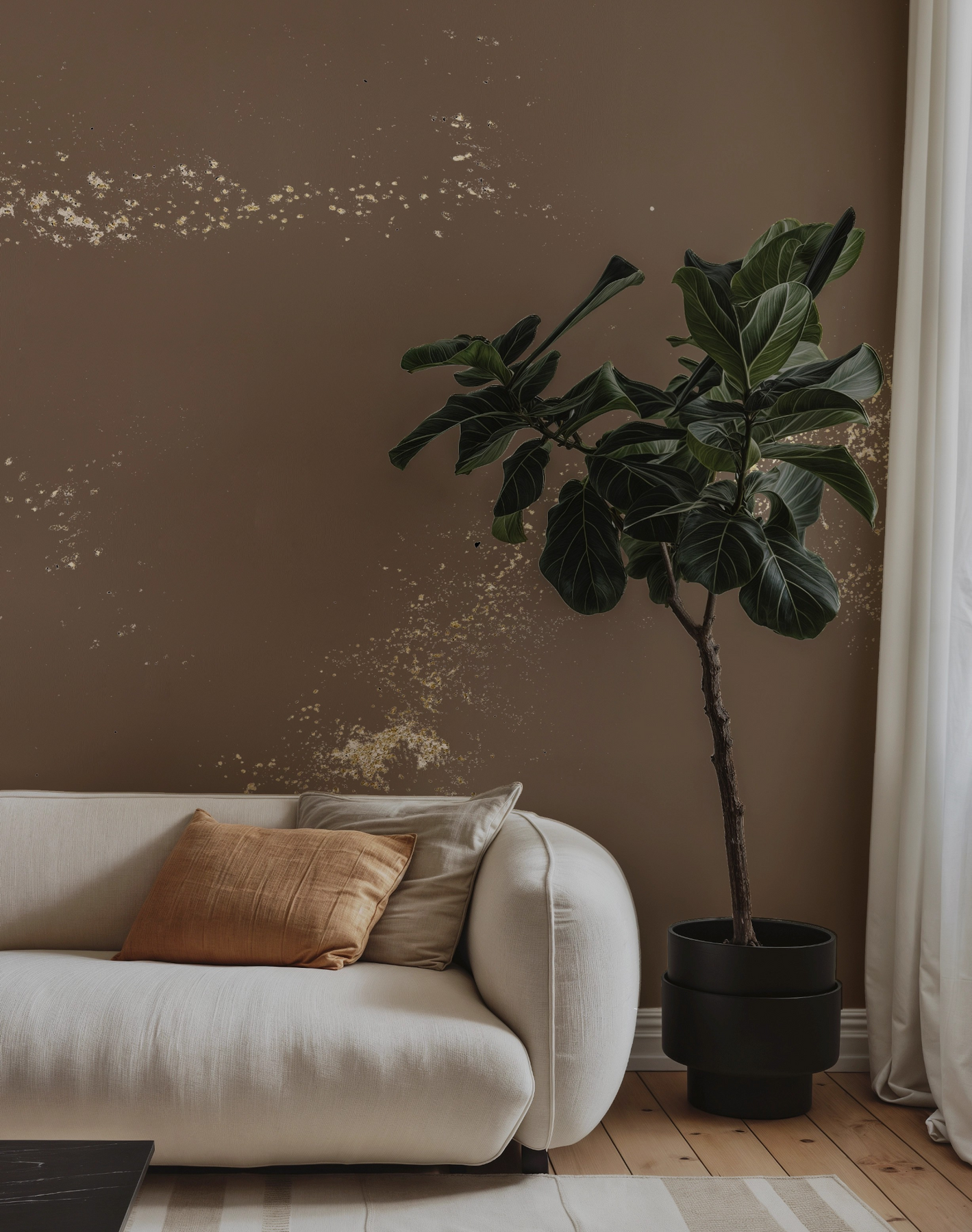 Igneous is a design made from carbon powder and using Custhom’s innovative process of hand-foiling wallpapers, creating a unique distressed or highly polished finish in a wide range of metallic hues, imitating the crystallization of igneous rocks formed through the cooling and solidification of magma or lava.