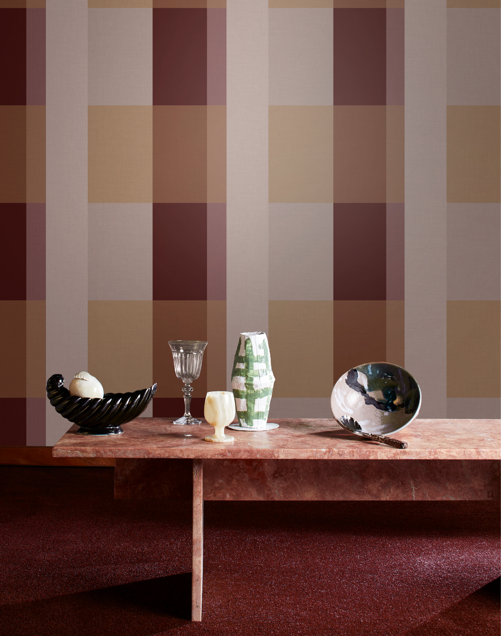 Maroon, tan, and beige illustration