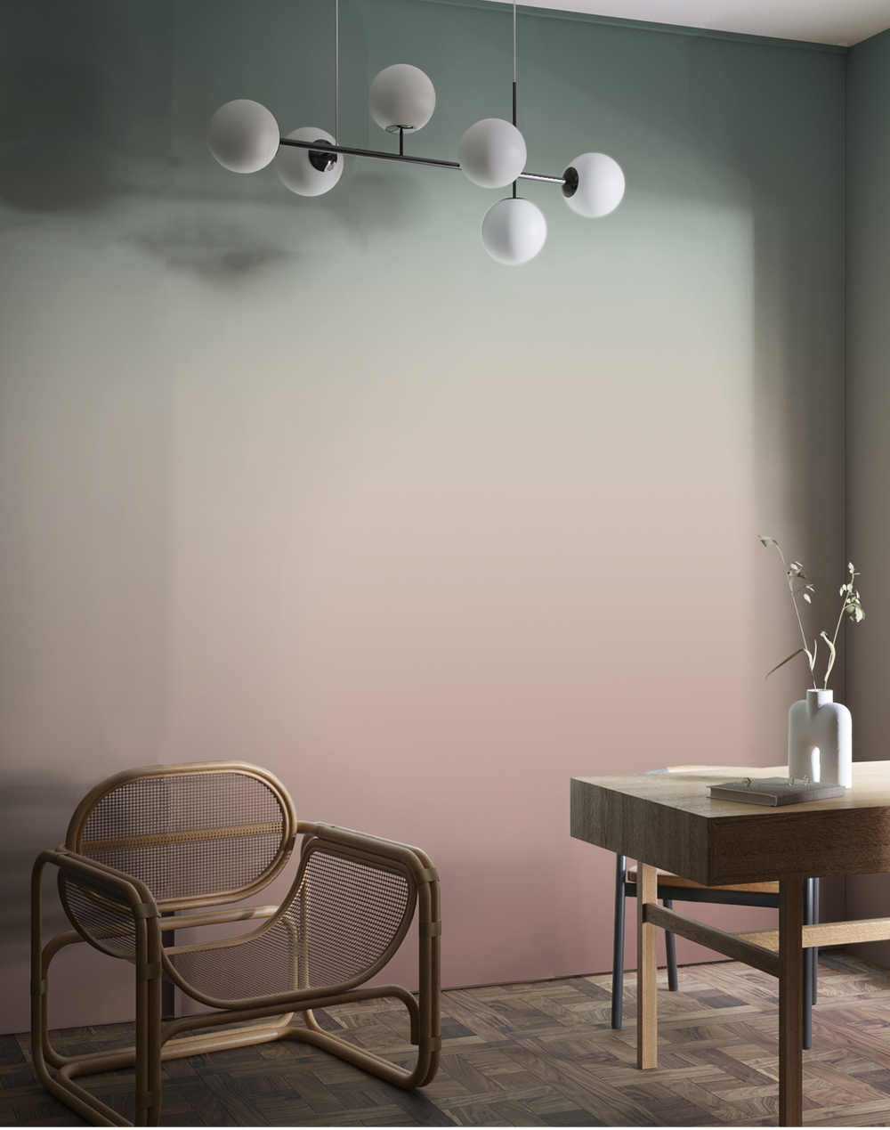 Ombre shades of greenish grey and reddish brown