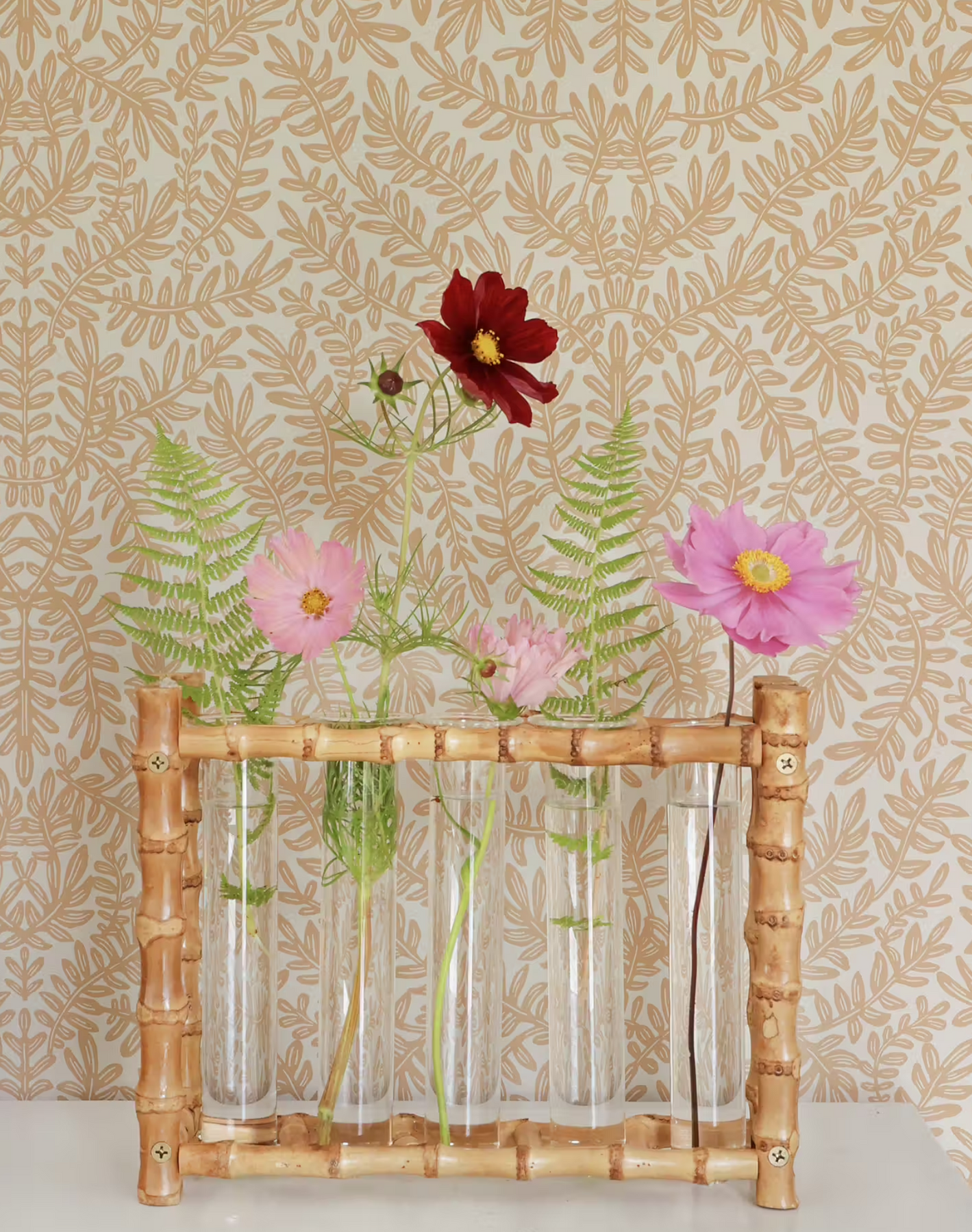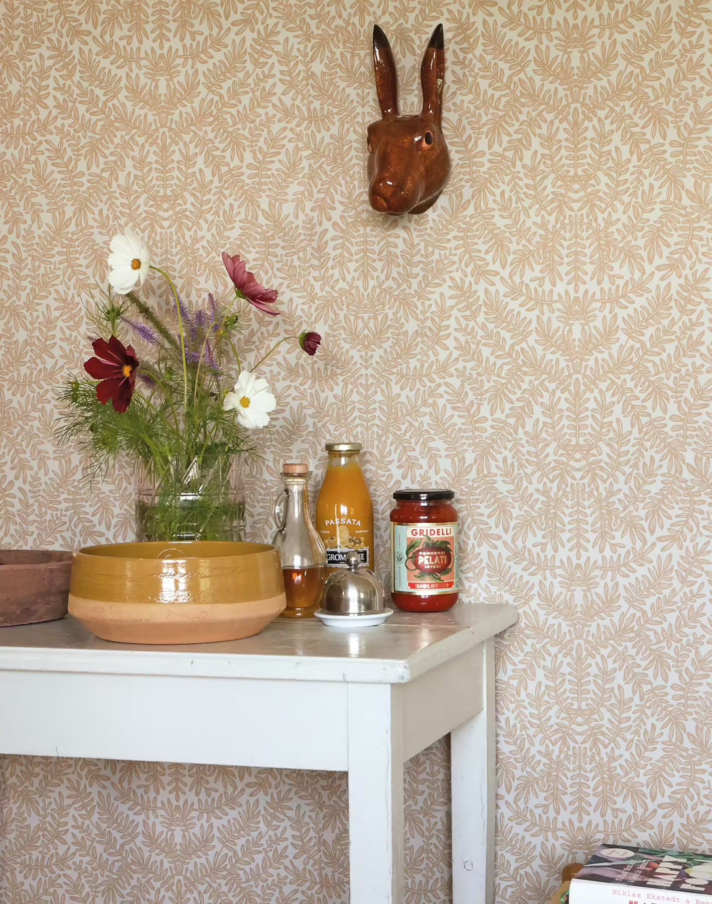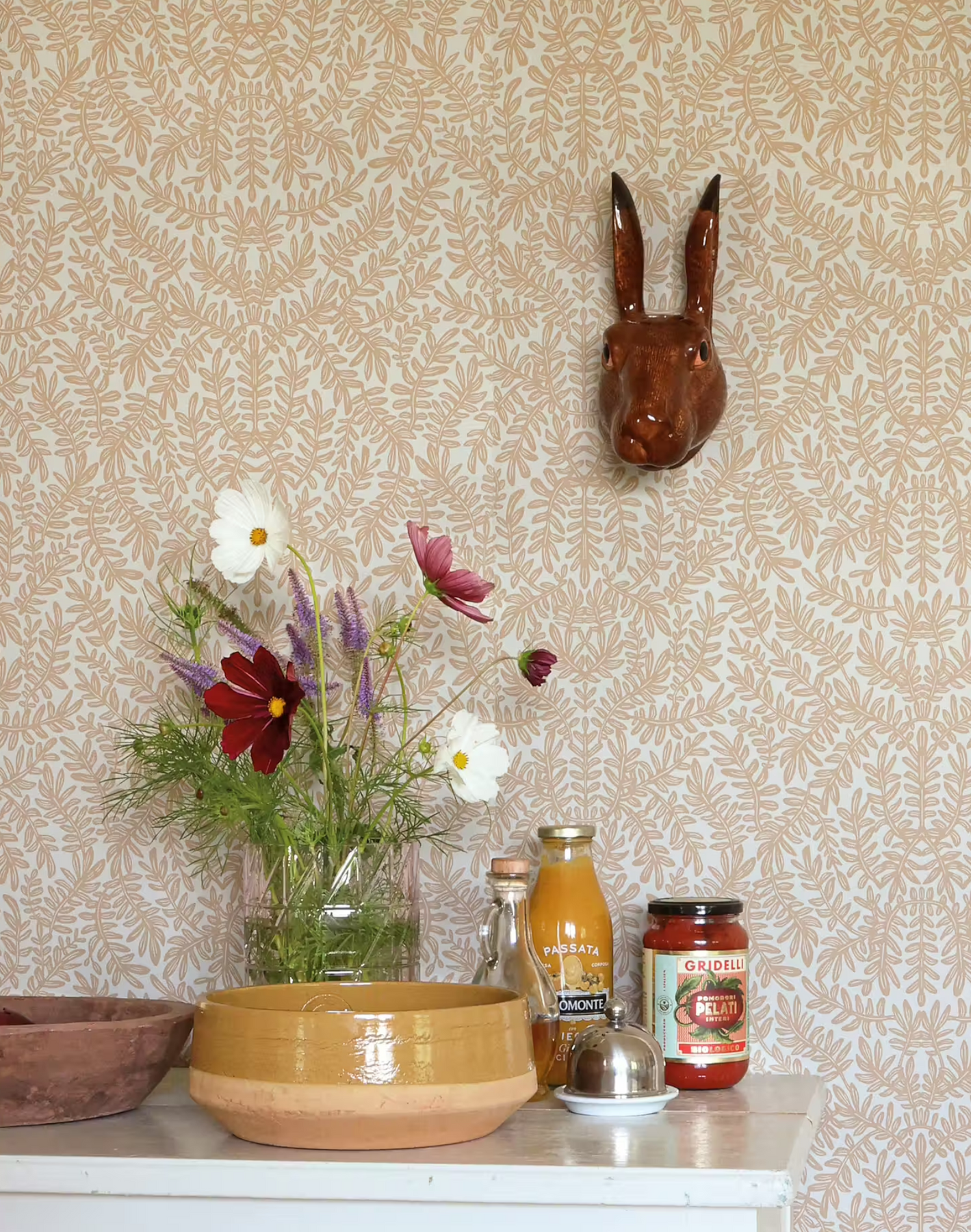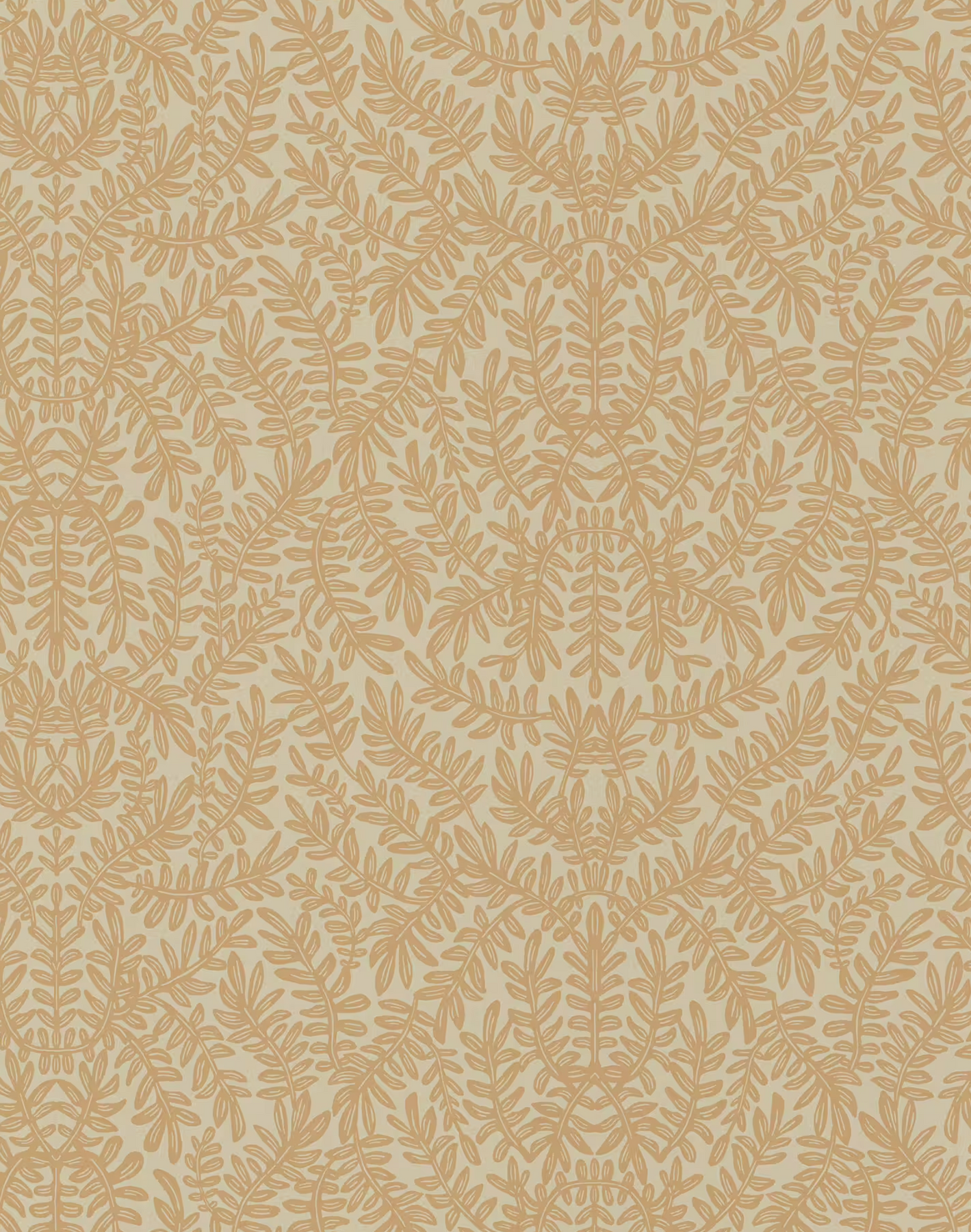 A dense tapestry of graceful leaves, where subtle chandeliers sparkle like delicate medallions. A timeless pattern that breathes tradition with a modern twist, moving between refined elegance and bohemian romance.