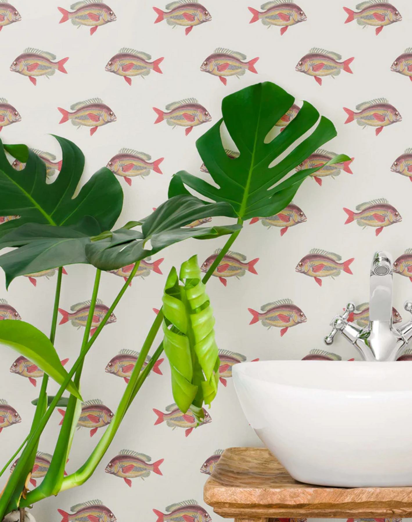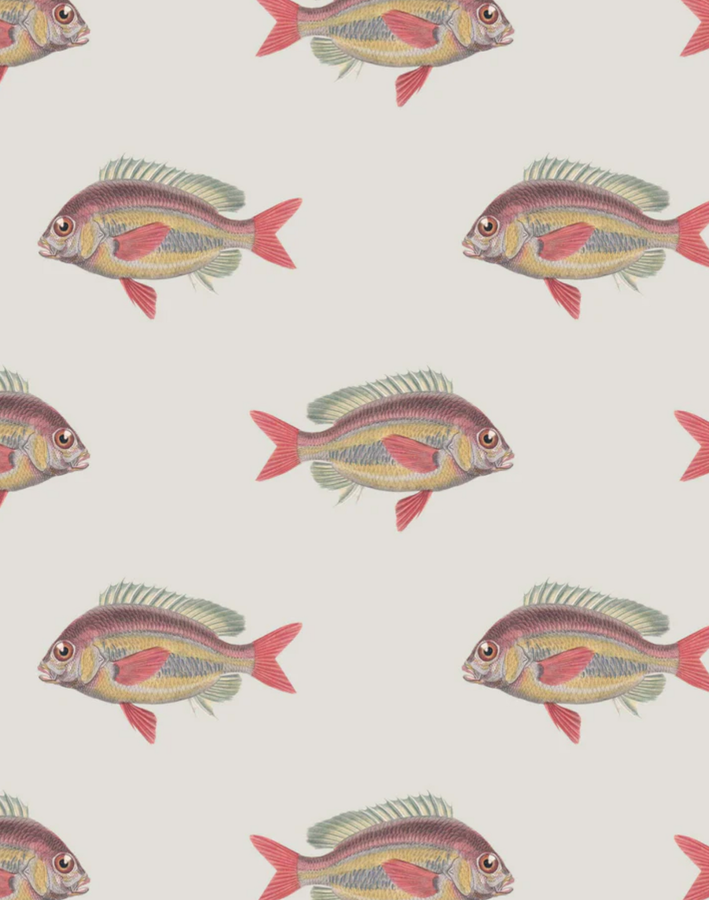 A sophisticated fish wallpaper for a coastal vibe of aquatic elegance. Going Swimmingly is available in 2 muted and peaceful colorways.