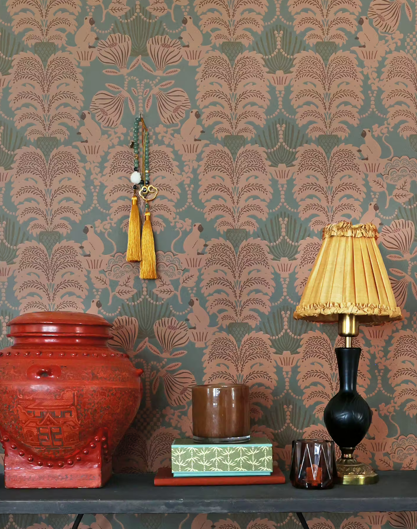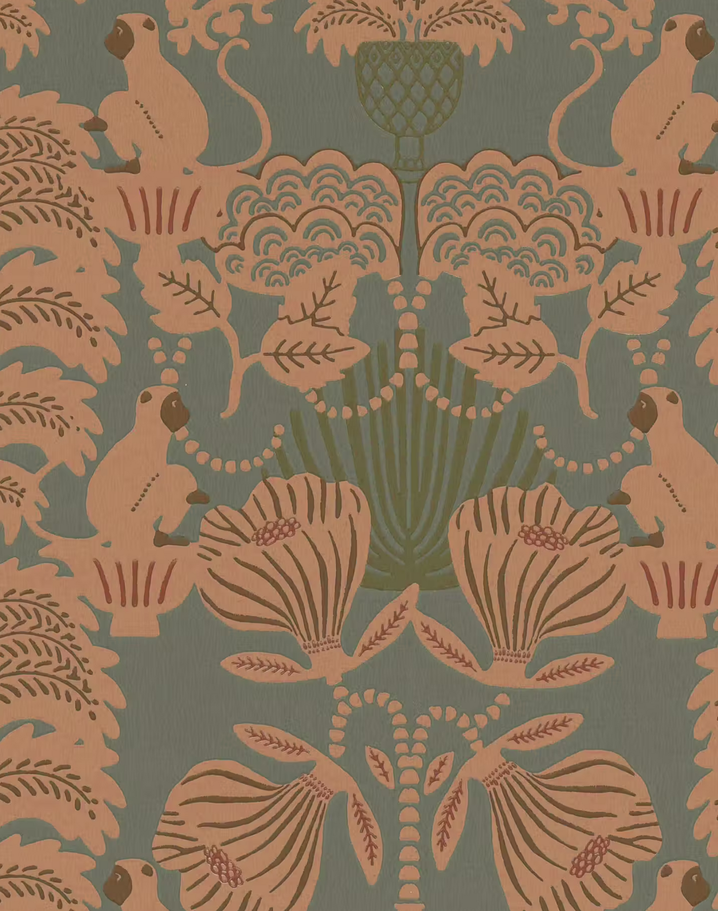 An exotic cocktail infused with the charm of the Twenties, Hello Monkey is a playful pattern that breathes poetic elegance.