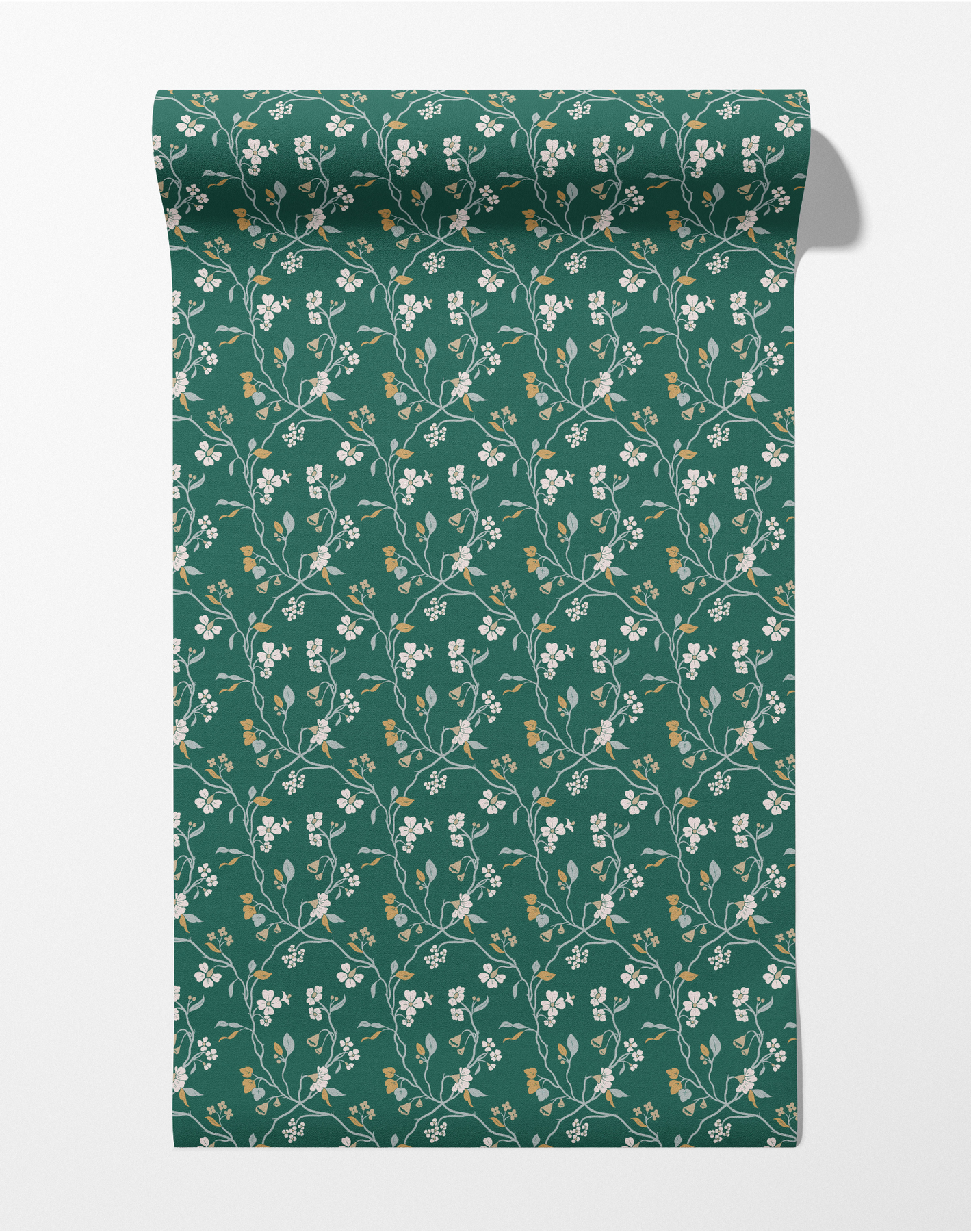 Each Riverpine pattern is painted or illustrated by hand, drawing from nature, vintage textiles, and overlooked architectural details—aged walls, worn fabrics, and everyday surroundings that carry history and texture. Every design is developed slowly and with care, with attention to how it will shape the feeling of a space.