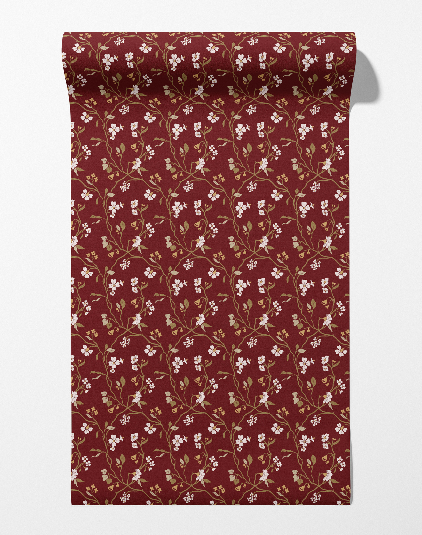 Lunaria Vine in Tuscan Merlot combines warm reds with soft floral detailing perfect for adding a little drama to any space.