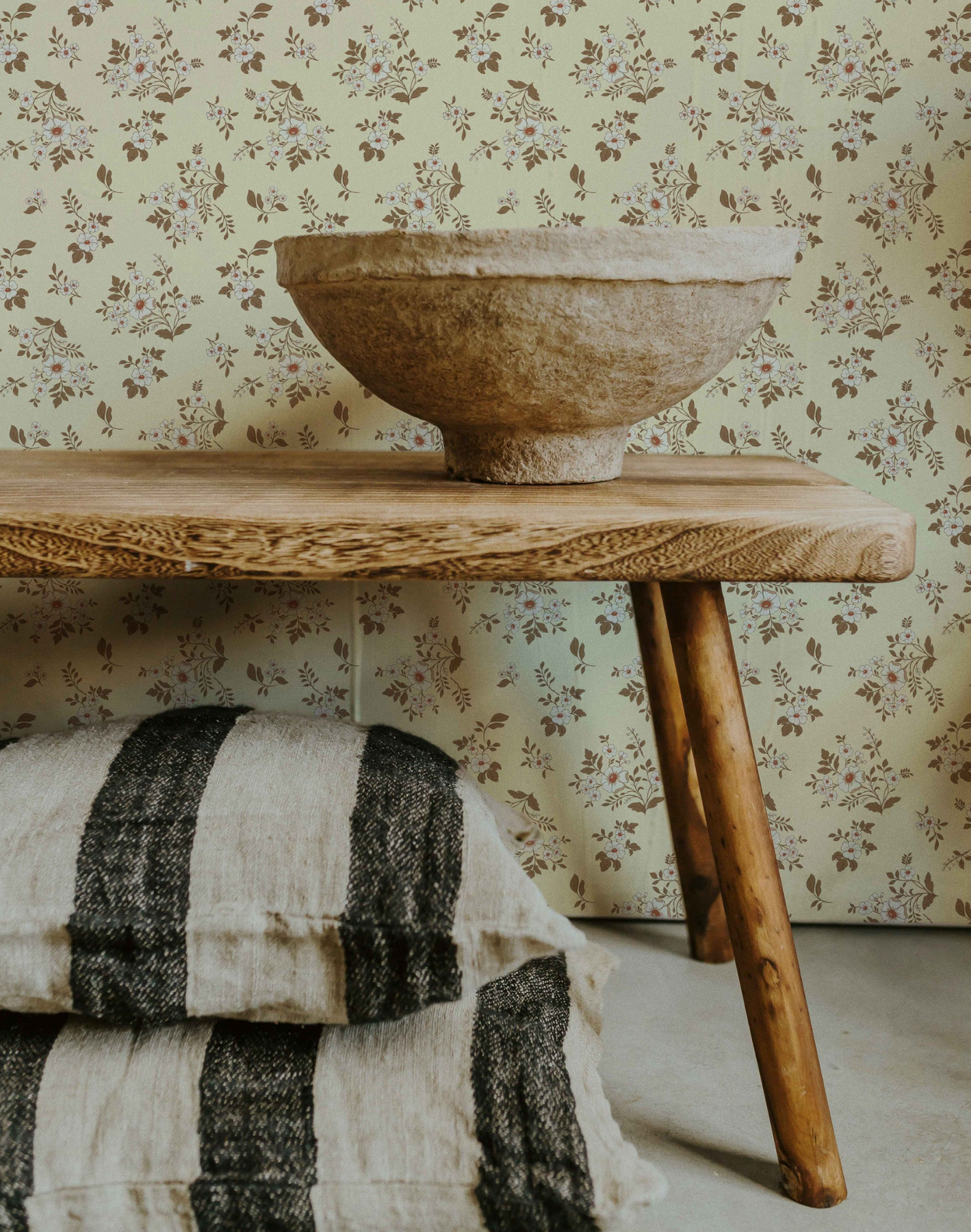 Each Riverpine pattern is painted or illustrated by hand, drawing from nature, vintage textiles, and overlooked architectural details—aged walls, worn fabrics, and everyday surroundings that carry history and texture. Every design is developed slowly and with care, with attention to how it will shape the feeling of a space.