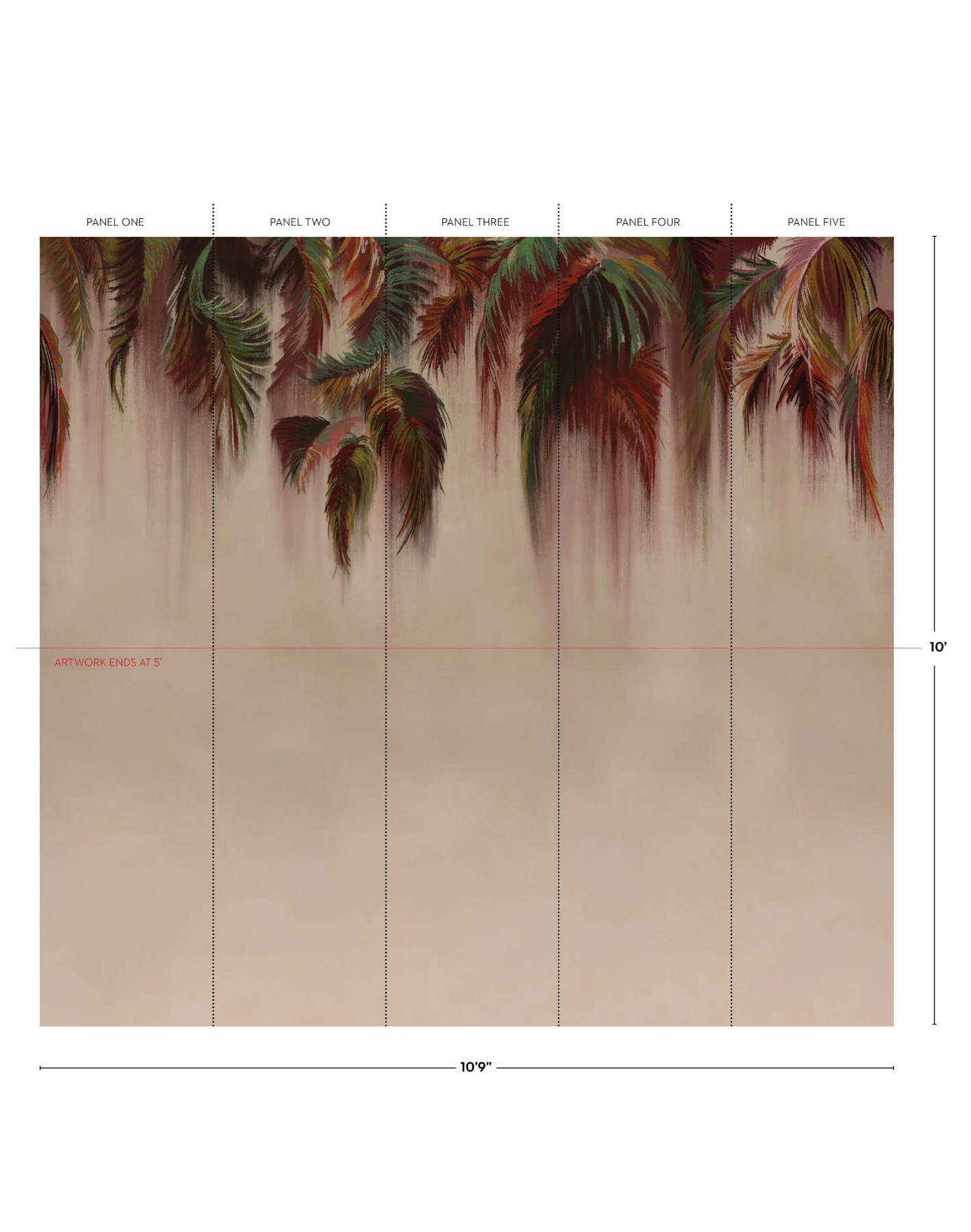 • Repeat: mural design repeats every 5 panels (approx 130")