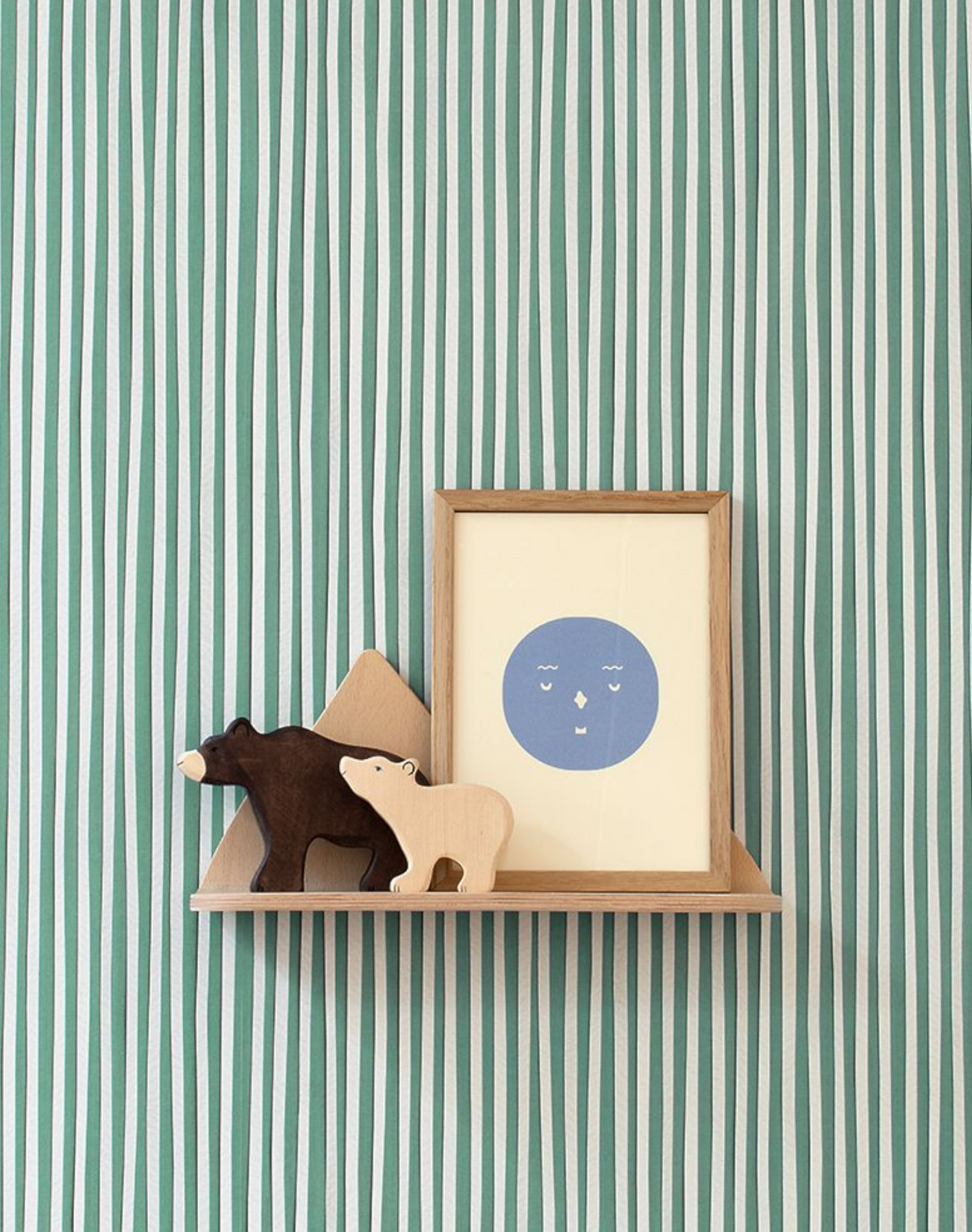 Studio Ditte's Stripes wallpaper in Jade combines simplicity with playful elegance. The subtle irregularities of the stripes provide a playful effect, making the wallpaper look both lively and refined. Perfect for hallways, living rooms, or bedrooms, Studio Ditte's stripes wallpaper adds a contemporary, whimsical vibe to your space with a creative touch.