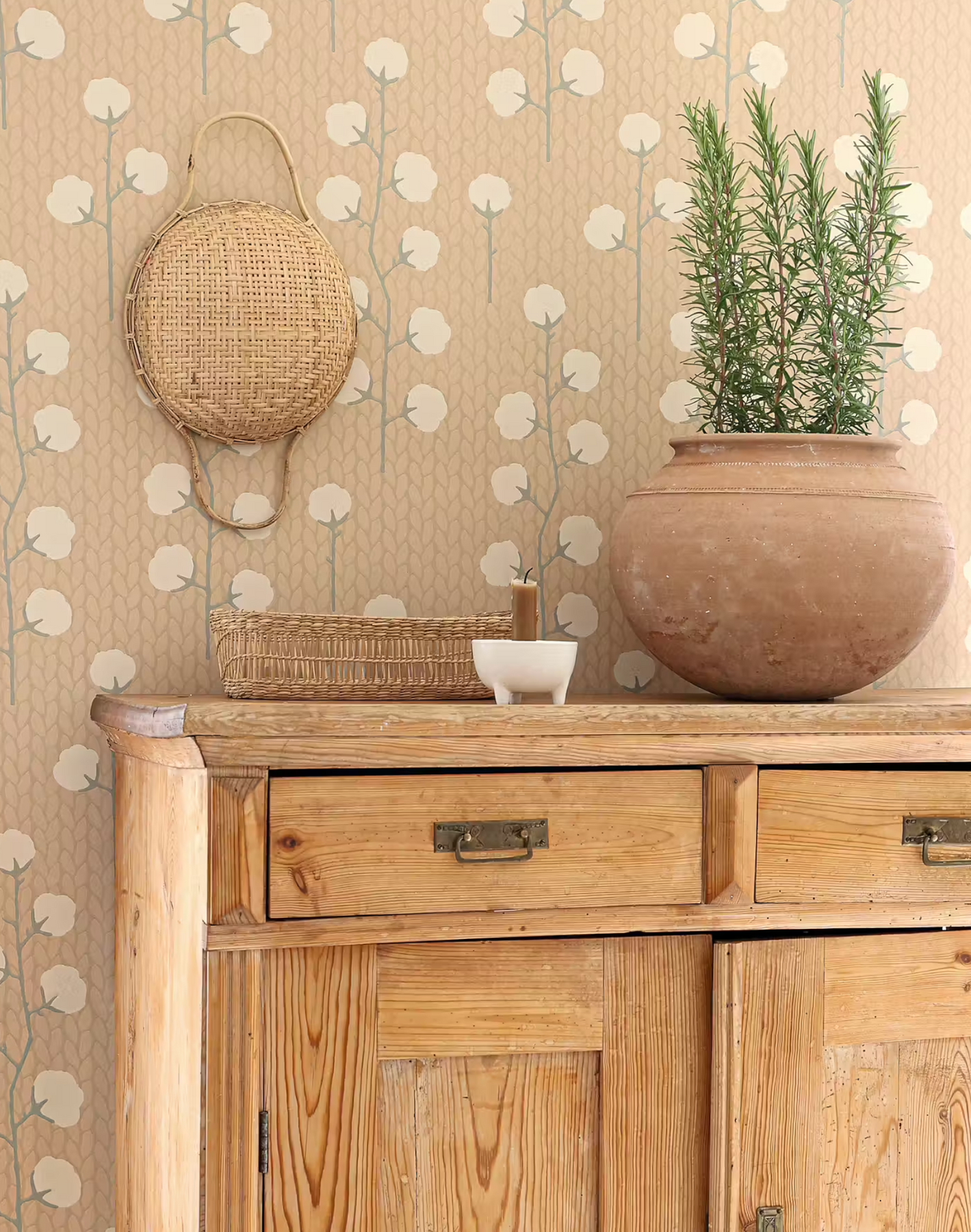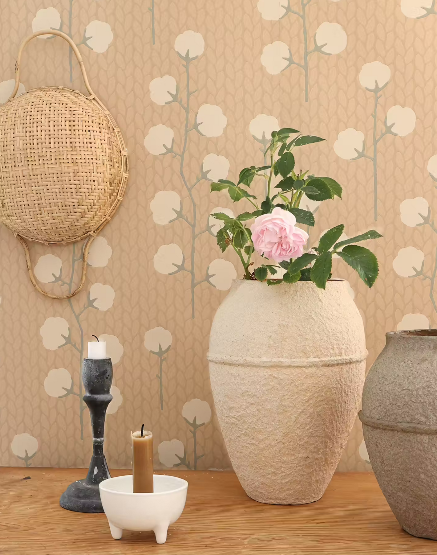 A composition that evokes sun-warmed cotton fields at dawn, where a sense of natural warmth, playful elegance, and serene nostalgia prevails.