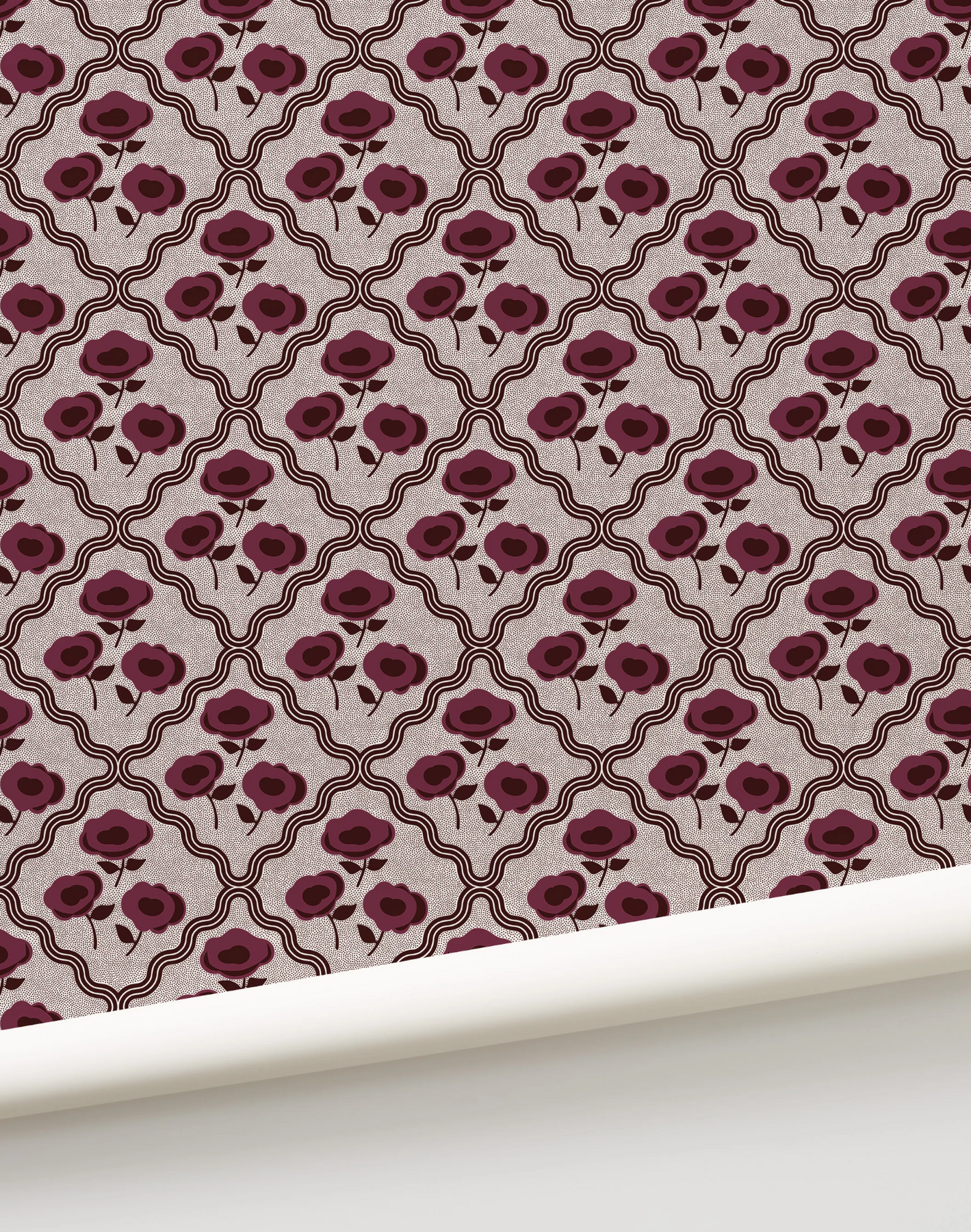 This wallpaper is hand-silkscreened using water-based inks on recyclable paper and is available in five colorways.