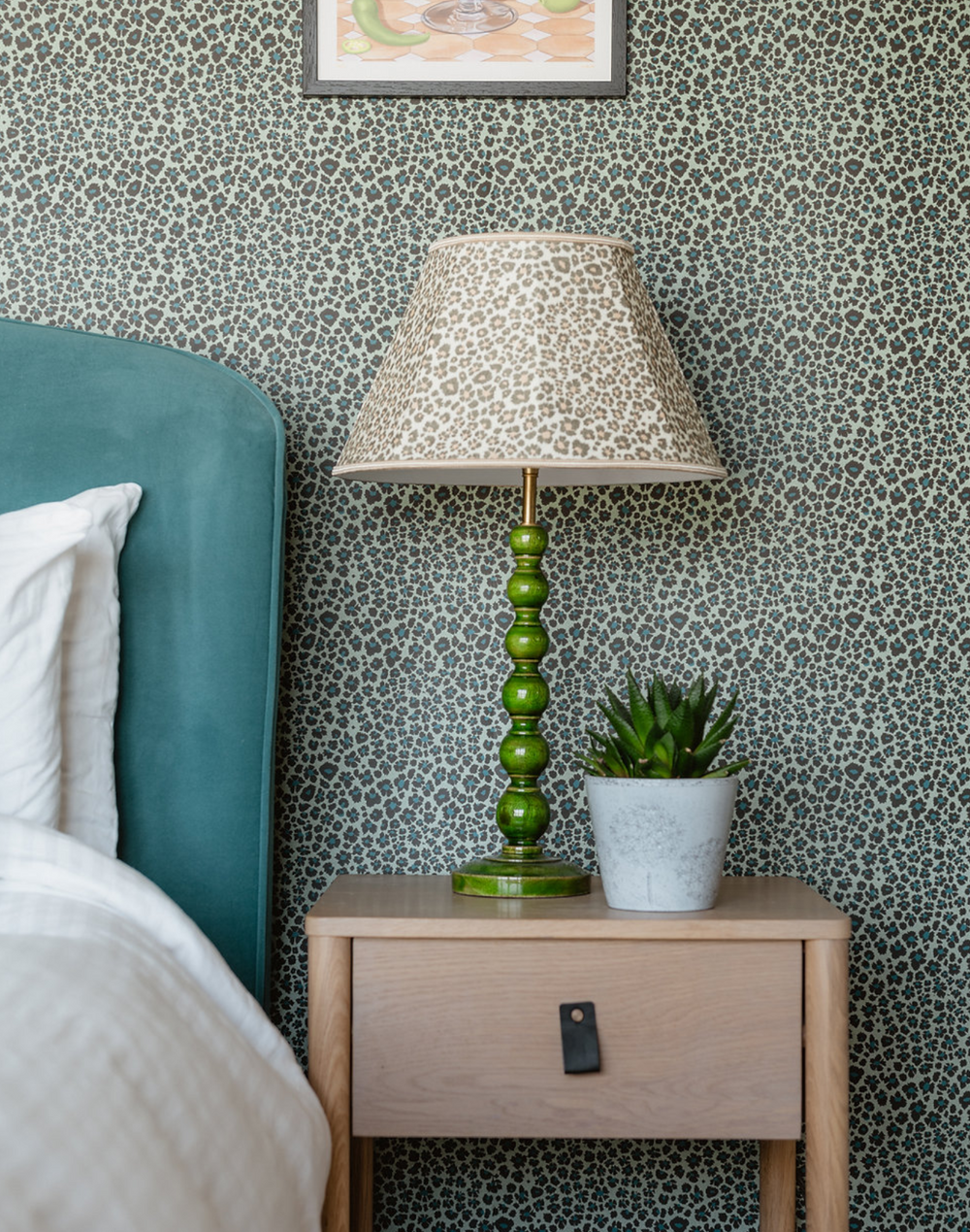 Wilding is a fun twist in the traditional leopard print spot, but look closer and each spot is in fact a flower creating a vast meadow. Similar patterns are found within the surfaces of coral. It can take on many forms of nature and interpretation and can be whatever you want it to be. Wilding is the perfect accent print or stand-alone textural design. Given the moniker wilding in support of the rewilding movement whereby areas of nature are given back to the earth to regenerate. Wilding aims to add cool eclectic style to your space and inject bags of personality and character. Our Spearmint colorway features a cool minty green base with pops of vibrant teal. Perfect to effortlessly pair with our blue or green toned prints.