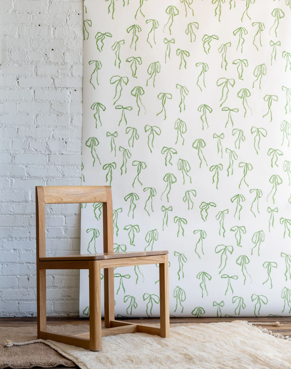 Hand painted watercolor bows are made into a pattern of dancing ribbons. A design that ponders fluidity and rigidity, masculinity and femininity, novelty and tradition - in colorways ranging from fresh and bright to tonal and moody.