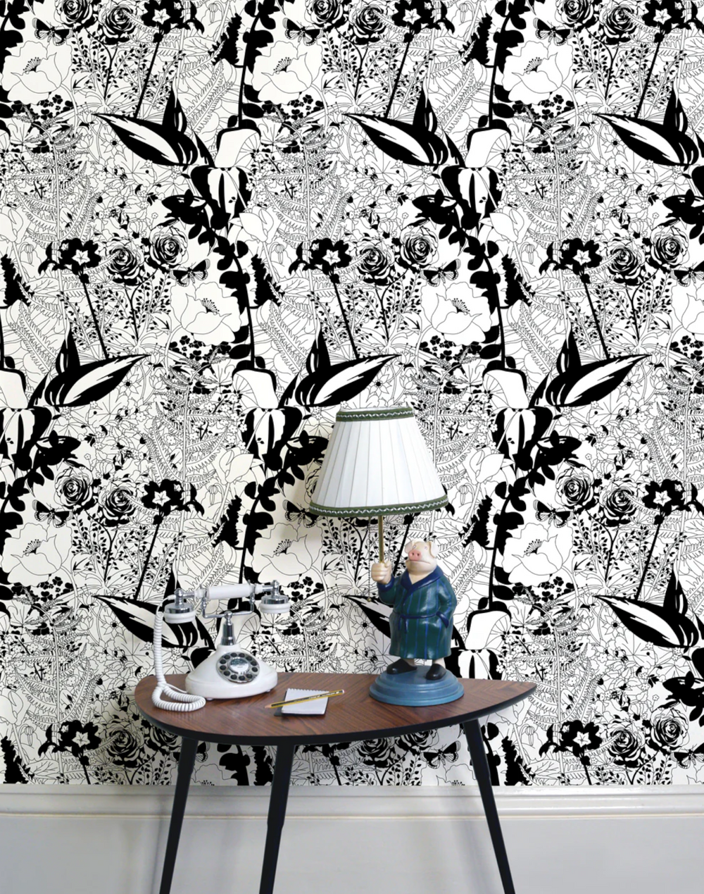 All the flora and fauna are captured in this bold, floral country garden wallpaper. Look closely at the charming English Garden design and you will see an abundance of summer delights and details waiting to be discovered! This attention to detail and illustrative style is what sets Dupenny apart from other pattern designers. Renovate those tired walls and bring a slice of the British countryside inside. Dupenny’s classic monochrome palette will enhance any color scheme.