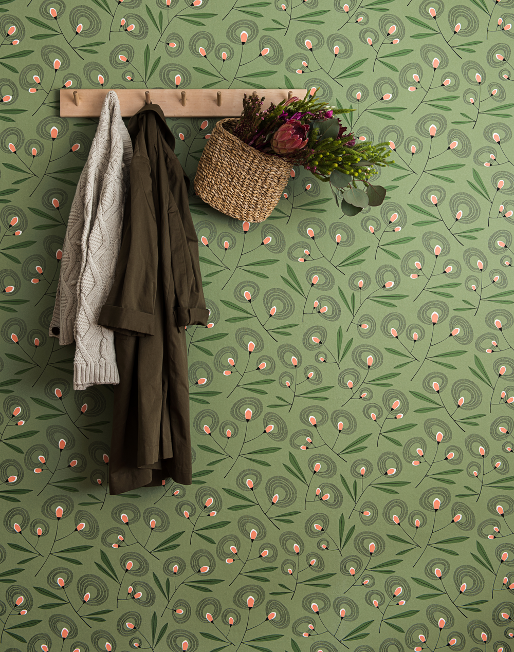 Inspired by the Australian Gum Blossom tree and its firework-like blooms, these flowers don't have petals but instead offer an explosion of stamens, providing plenty of nectar for bees, other pollinators and nectar-feeding birds. Available in a charming palette of sage, soft blues and a neutral white with pops of berry and green, this design is perfect for those looking to add some character to their walls.