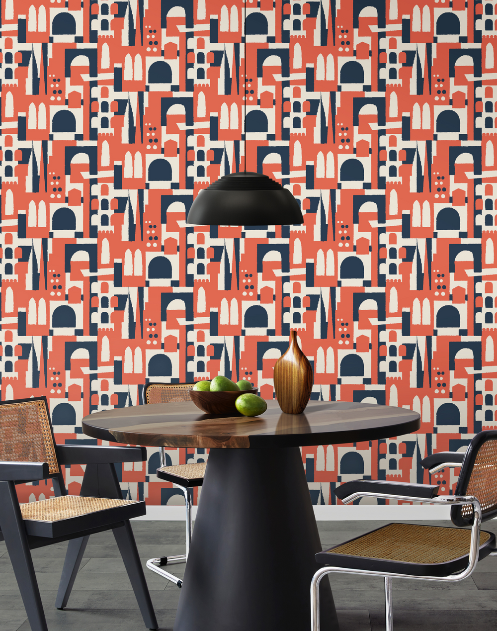 The title says it all. This wallpaper is an unapologetically personal paean to one of our favorite cities. Yes, it’s all about Brooklyn these days, but our hearts belong to Manhattan. Particularly the Lower East Side, where we have stayed since the nineties. Look closely at the abstract forms to discover two bridges, a couple of famous skyscrapers, our favorite music venue on the Bowery and an endless stream of traffic making its way uptown on Avenue A. The torn paper aesthetic lends an energy and immediacy to the design, capturing the vitality of the city.