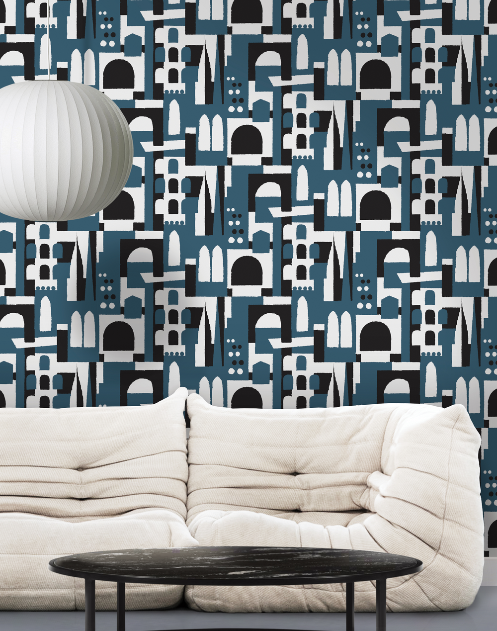 The title says it all. This wallpaper is an unapologetically personal paean to one of our favorite cities. Yes, it’s all about Brooklyn these days, but our hearts belong to Manhattan. Particularly the Lower East Side, where we have stayed since the nineties. Look closely at the abstract forms to discover two bridges, a couple of famous skyscrapers, our favorite music venue on the Bowery and an endless stream of traffic making its way uptown on Avenue A. The torn paper aesthetic lends an energy and immediacy to the design, capturing the vitality of the city.
