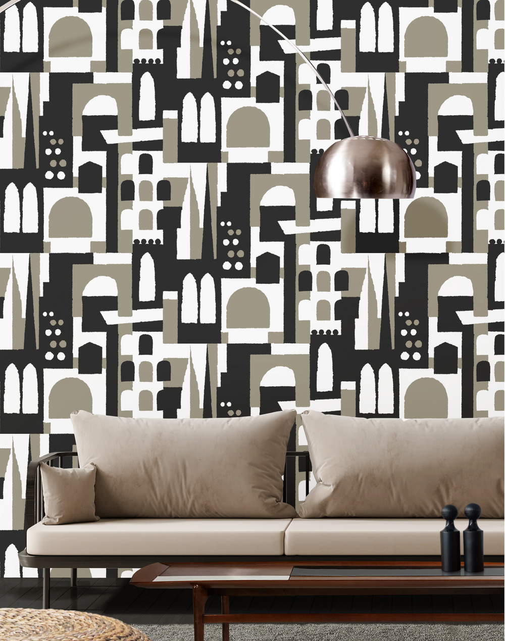 The title says it all. This wallpaper is an unapologetically personal paean to one of our favorite cities. Yes, it’s all about Brooklyn these days, but our hearts belong to Manhattan. Particularly the Lower East Side, where we have stayed since the nineties. Look closely at the abstract forms to discover two bridges, a couple of famous skyscrapers, our favorite music venue on the Bowery and an endless stream of traffic making its way uptown on Avenue A. The torn paper aesthetic lends an energy and immediacy to the design, capturing the vitality of the city.