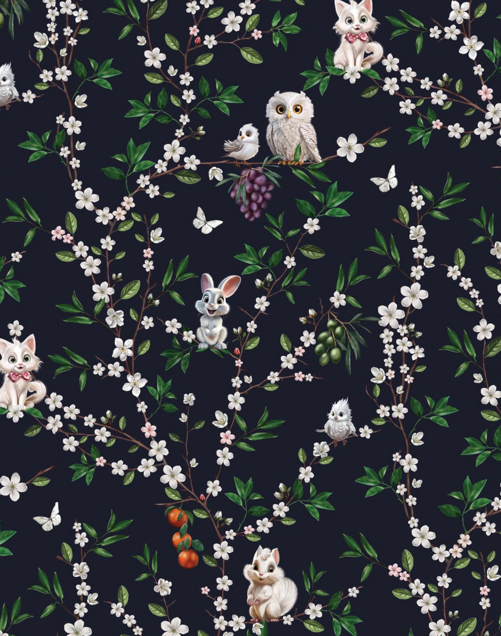 Every element in each design has been originally painted by hand in oil on canvas then digitally printed onto wallpaper and fabric using top quality manufacturers in the UK.