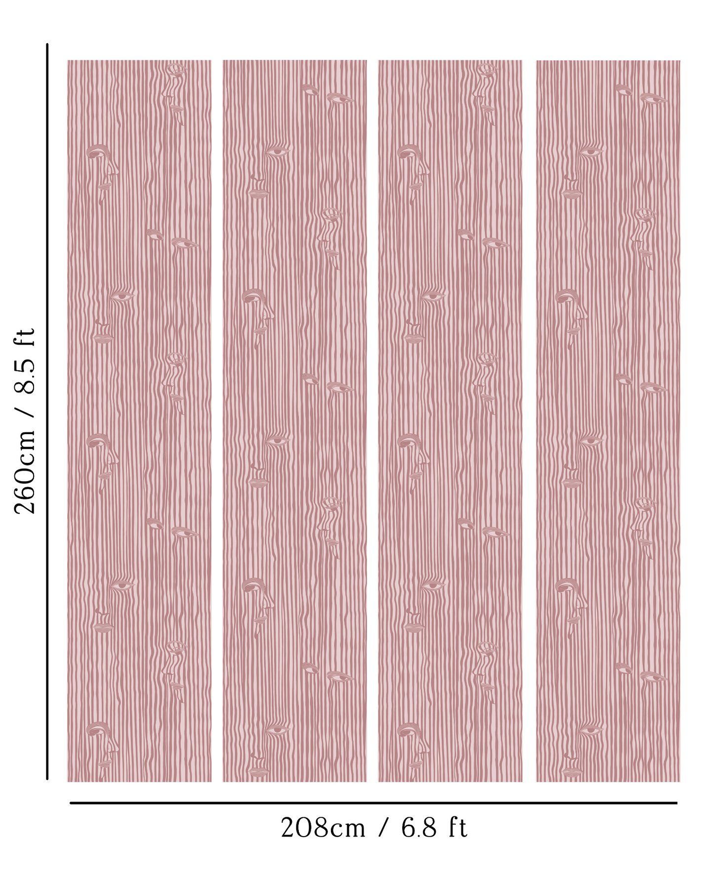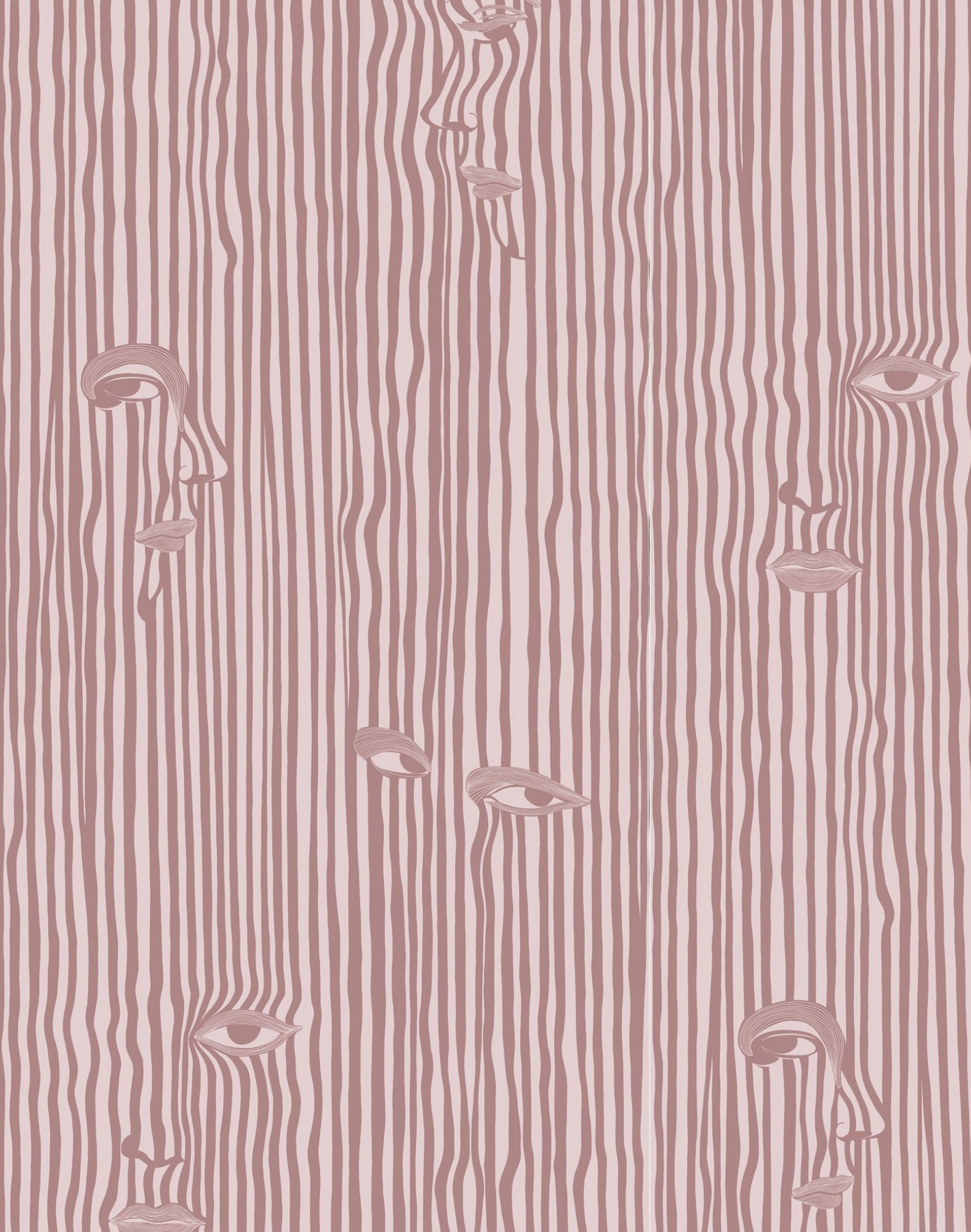 This hand-drawn striped wallpaper takes cues from the expressive line drawings of Picasso and Jean Cocteau. Hidden faces are softly integrated into the flowing stripes, adding charm and intrigue. In a warm blush tone, the design feels fresh, light and playful, perfect for bringing a touch of artistry to any room.