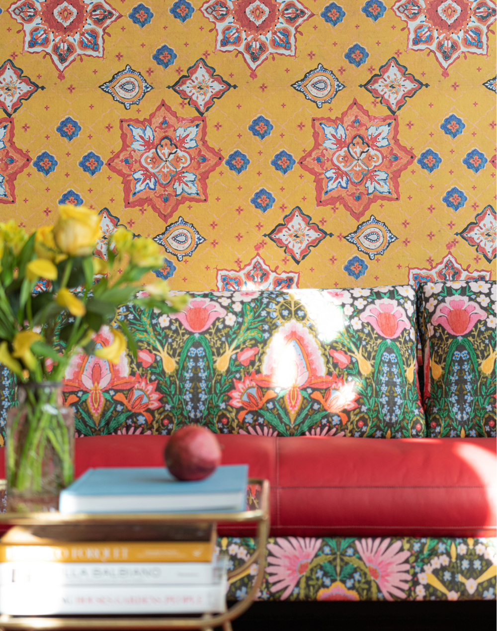 A show-stopping statement, the ARABIAN DECORATIVE print celebrates the color and style of the region perfectly. The blend of vivid reds and blues set against an earthy yellow background references the landscape, fashion and decorative architectural features connecting you to the culture directly. Bring any room to life with this dazzling burst of color where pattern and ornamental features are embraced to add a dramatic impact to any room.