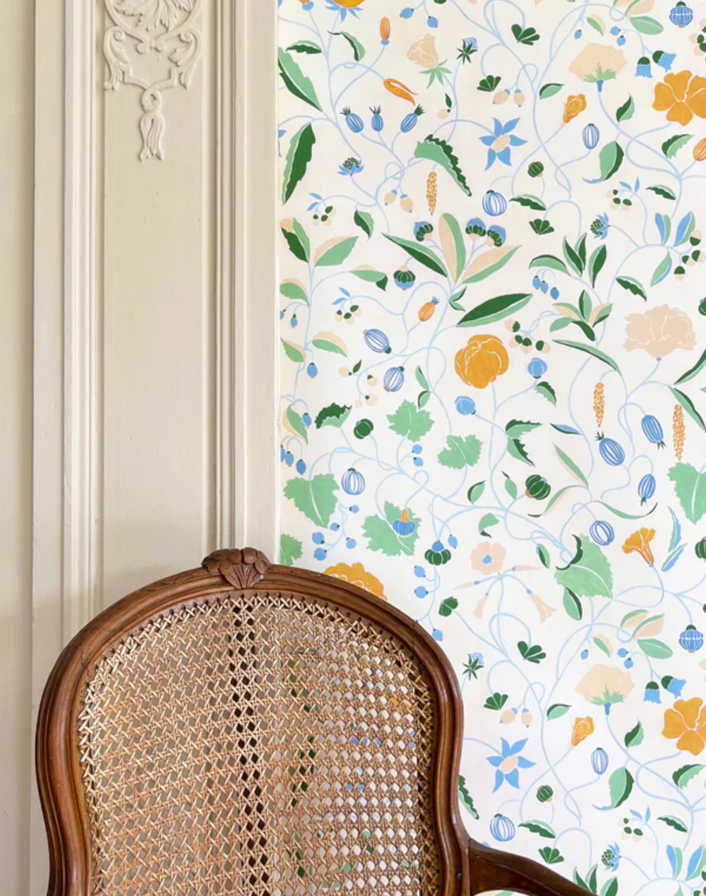 Claire de Quénetain is a painter who takes her inspiration from nature and gardens where she finds a variety of colors, shapes and movement. These references lead to her personal expression of painted marks. She aims at creating natural atmospheres for interiors. Her painting practice is applied onto walls, furniture, textiles and paper.