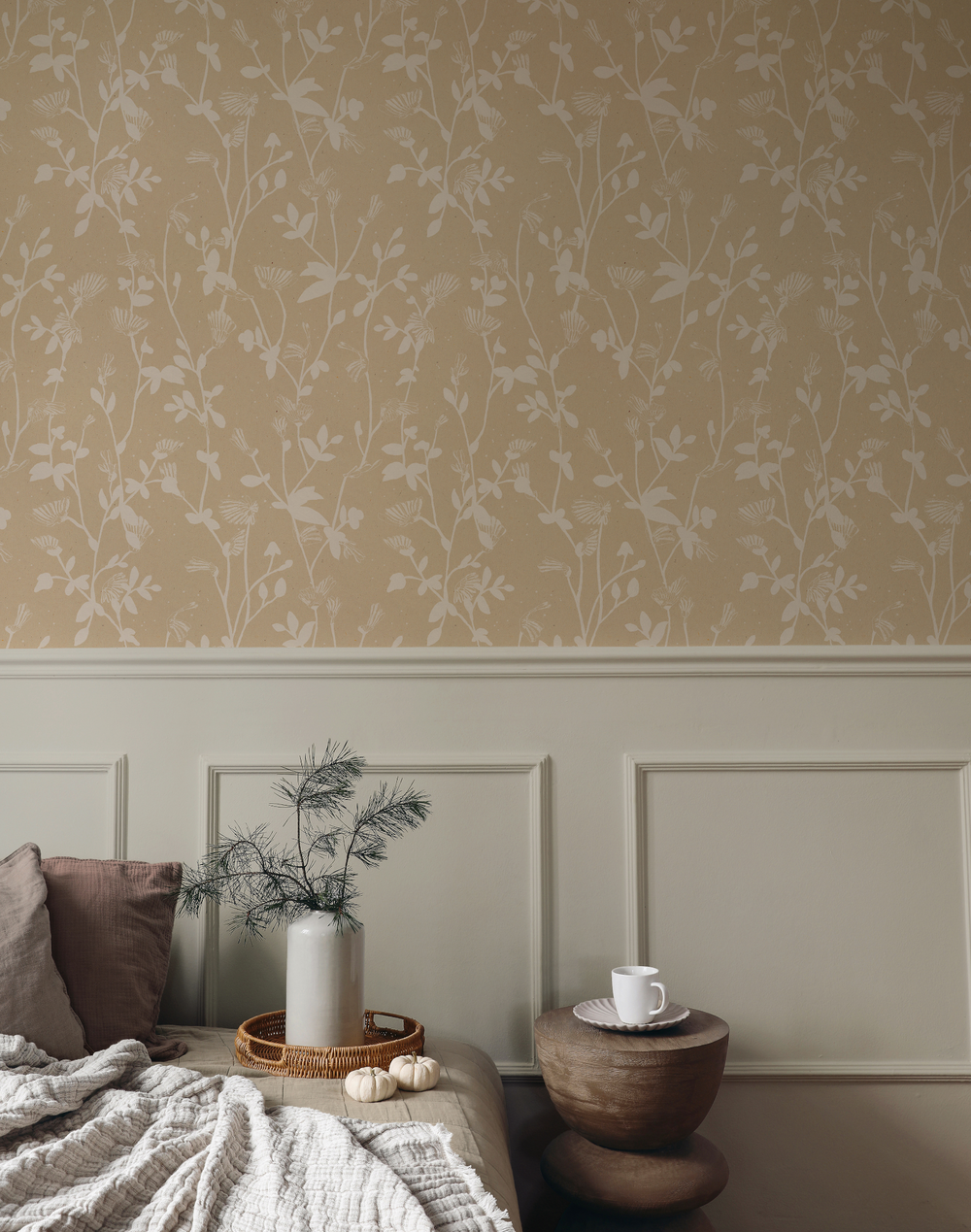 Surreal stalks intertwine with delicate bird wings instead of flowers, weaving into a wall of fantastical vines. Each colorway brings its own warmth and vintage charm, inviting a timeless and fairytale narrative into your home.