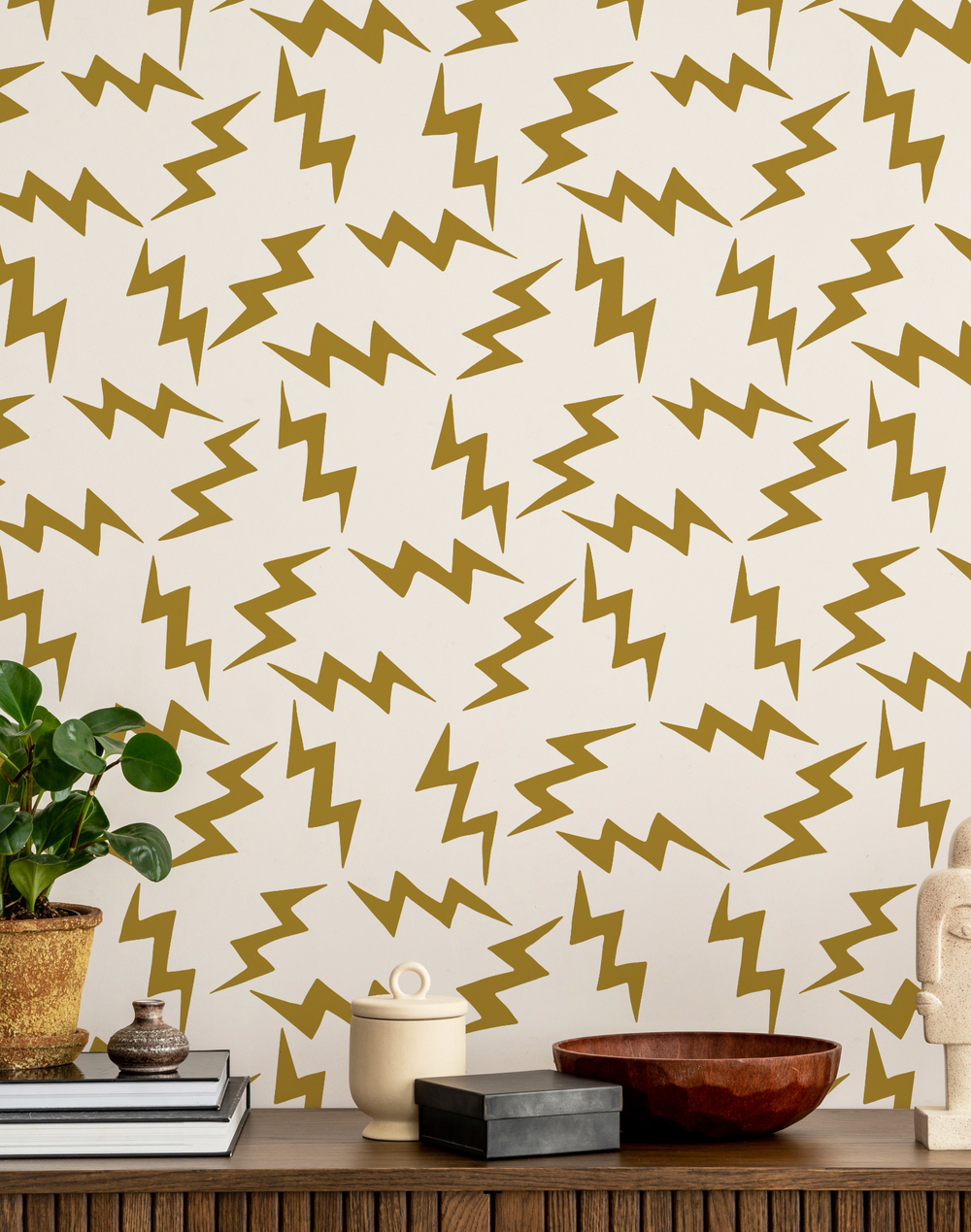 Designed together, Thunder and Lightning were born from Merenda’s drawing of dancing lightning bolts and playful hexagons. Thunder portrays a more classic geometric pattern, while Lightning features larger bolts in a true superhero style.
