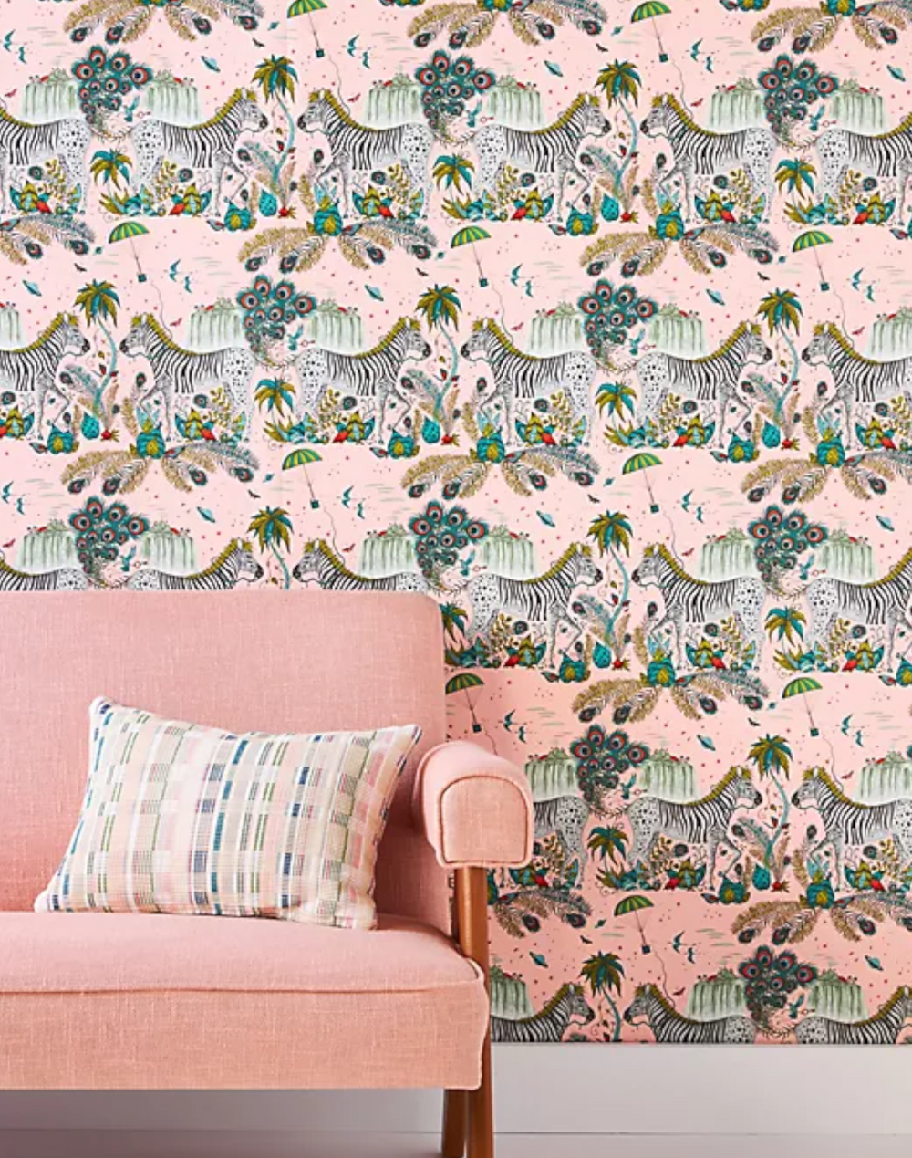 The Lost World Wallpaper is part of our Wilderie collection made in collaboration with interior experts Clarke & Clarke, and features an enchanting scene of discovery. With elements inspired by Jules Verne novels and the 1925 silent film The Lost World, the design details curious peacock-tailed zebras, winding foliage, towering mountains and mighty dinosaurs in the distance. There`s a whole world to explore within this intricate design! The tonal shades of jungle greens, teal, zebra print and accents of burnt orange bring the design to life on the off-white ground, and will inject jungle fantasy into your home.