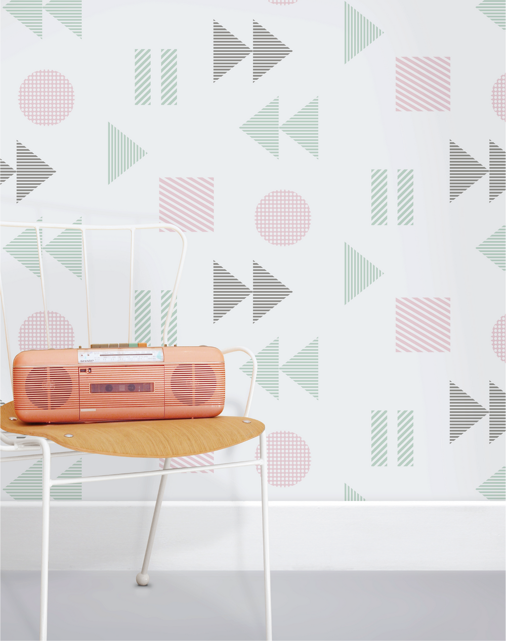 Back to the 1980s with a super-sized graphic design based on the function buttons of tape cassette players.
