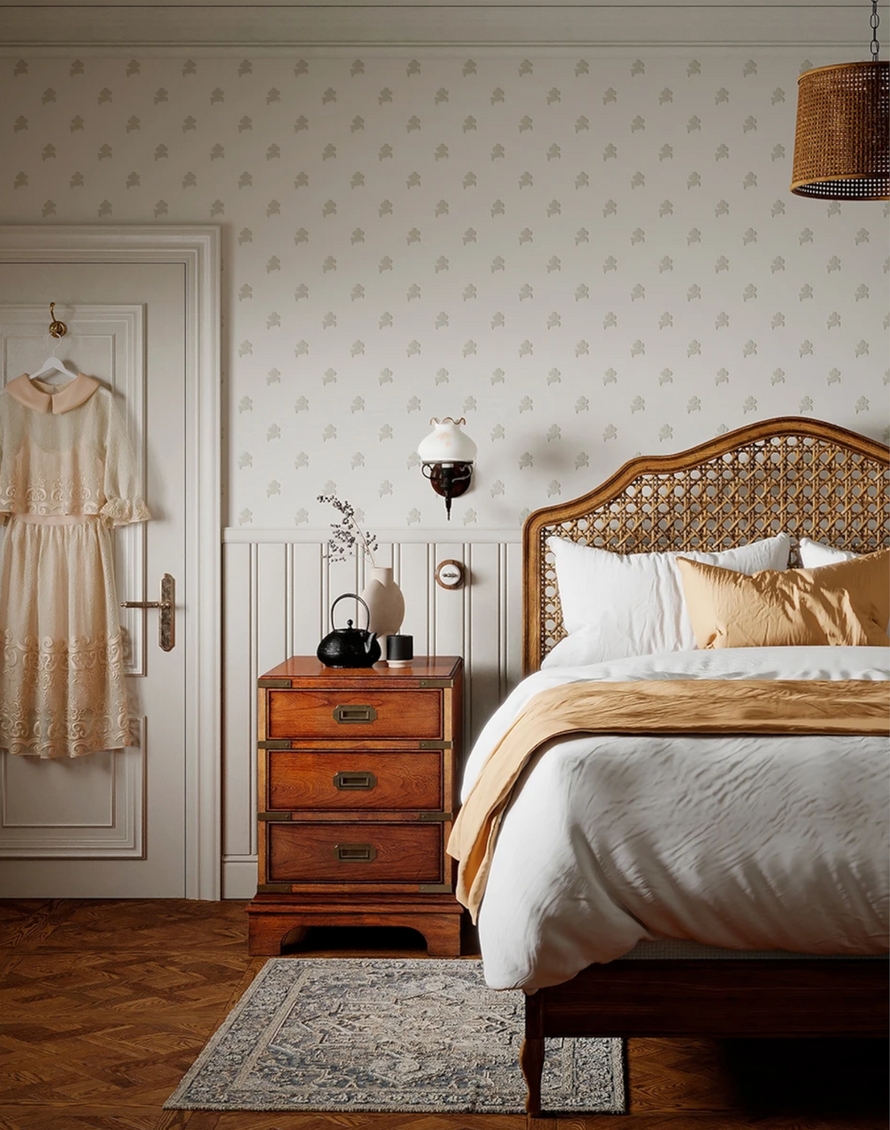 We've reimagined the traditional technique of flocking for our Poochi wallpaper! This dreamlike print is our cheeky twist on a classic polka-dot pattern, with fluffy, tactile dog motifs dancing across a sumptuously textured base that's just begging to be stroked!