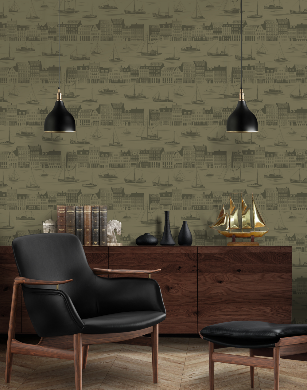 Inspired by our collection of hand-painted mid-century plates by Scandinavian artist Inger Waage, we visited Copenhagen one sunny Easter weekend. Our first sight of bustling Nyhavn, with boats sailing past its colorful townhouses, has stayed with us for many years - and became the inspiration for this design.