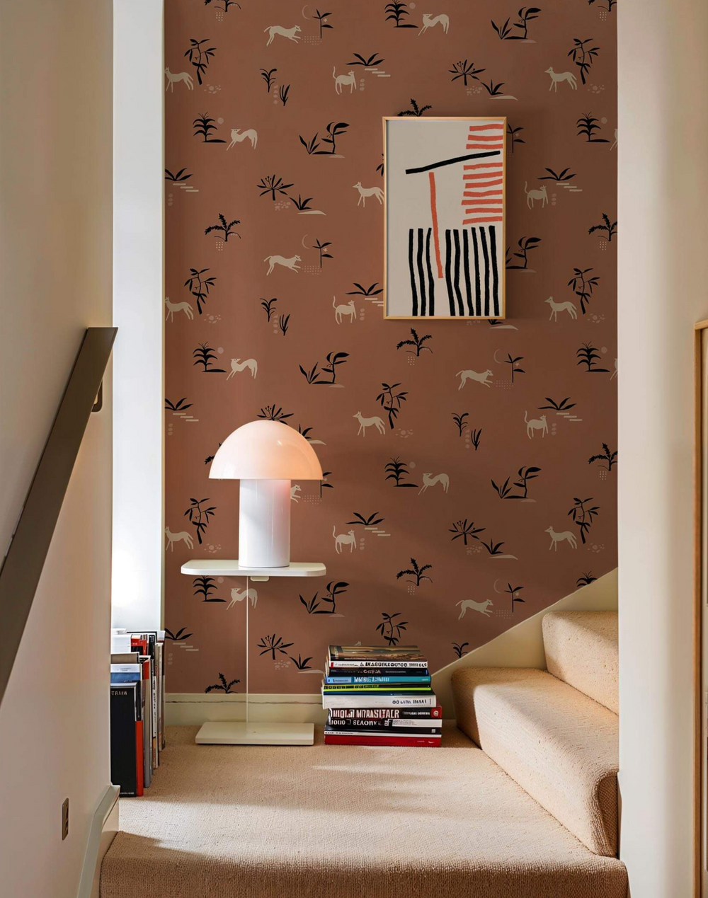 Coordonne’s Prehistoric Creatures Red is an animal inspired wallpaper in red/wine tones from the New Primitivism collection. Inspired by cave paintings.