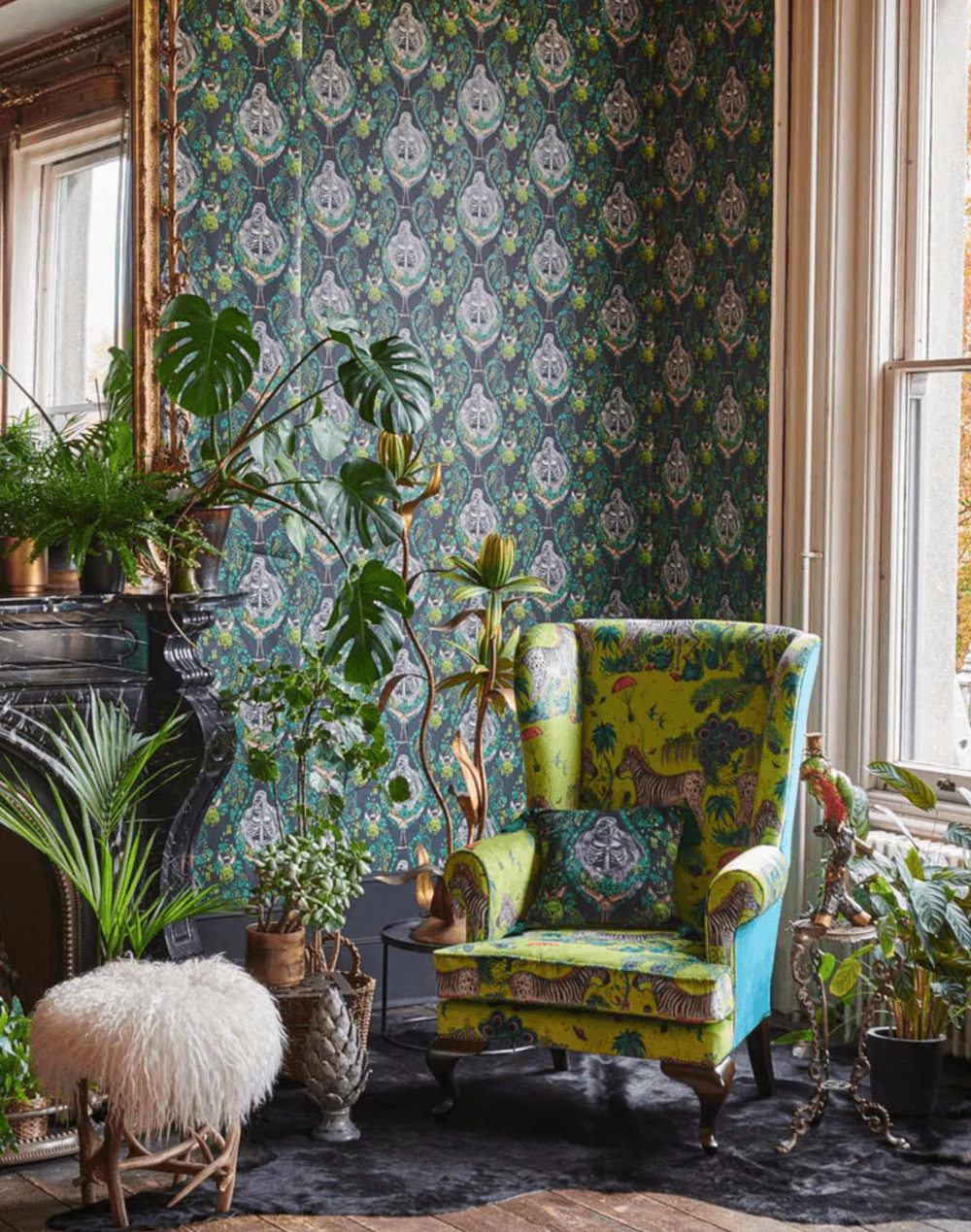 The Silverback Wallpaper, made in collaboration with Clarke & Clarke, is inspired by the close evolutionary connections between humans and gorillas, and their endangered status. The detailed hand-drawn design acts as a striking ode to our majestic cousins and a reminder to protect the natural world. Inject some exoticism into your home with this stunning wallpaper; rich with its striking metallic soft gold background that has a beautiful reflective shimmer when the light hits it, contrasted by the monochrome grey pencil details. That is sure to make a statement in your home, that will add an air of jungle magic.