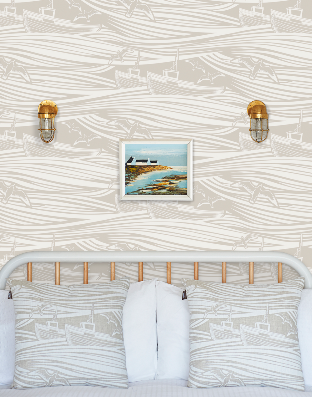 Inspired by 1950s linocuts, the bold wave motif of our Whitby design captures the majesty of the open sea.