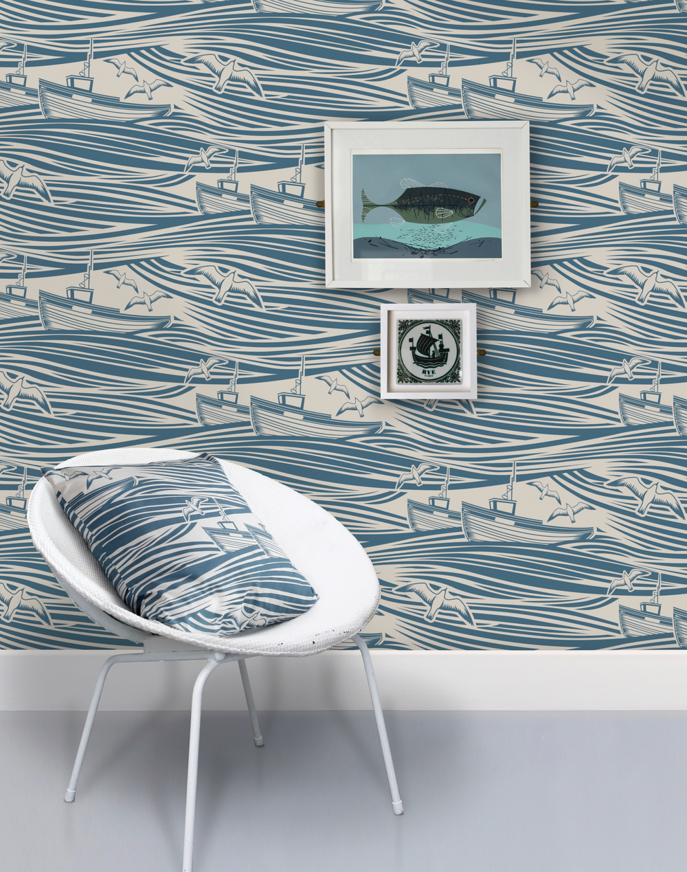 Inspired by 1950s linocuts, the bold wave motif of our Whitby design captures the majesty of the open sea.
