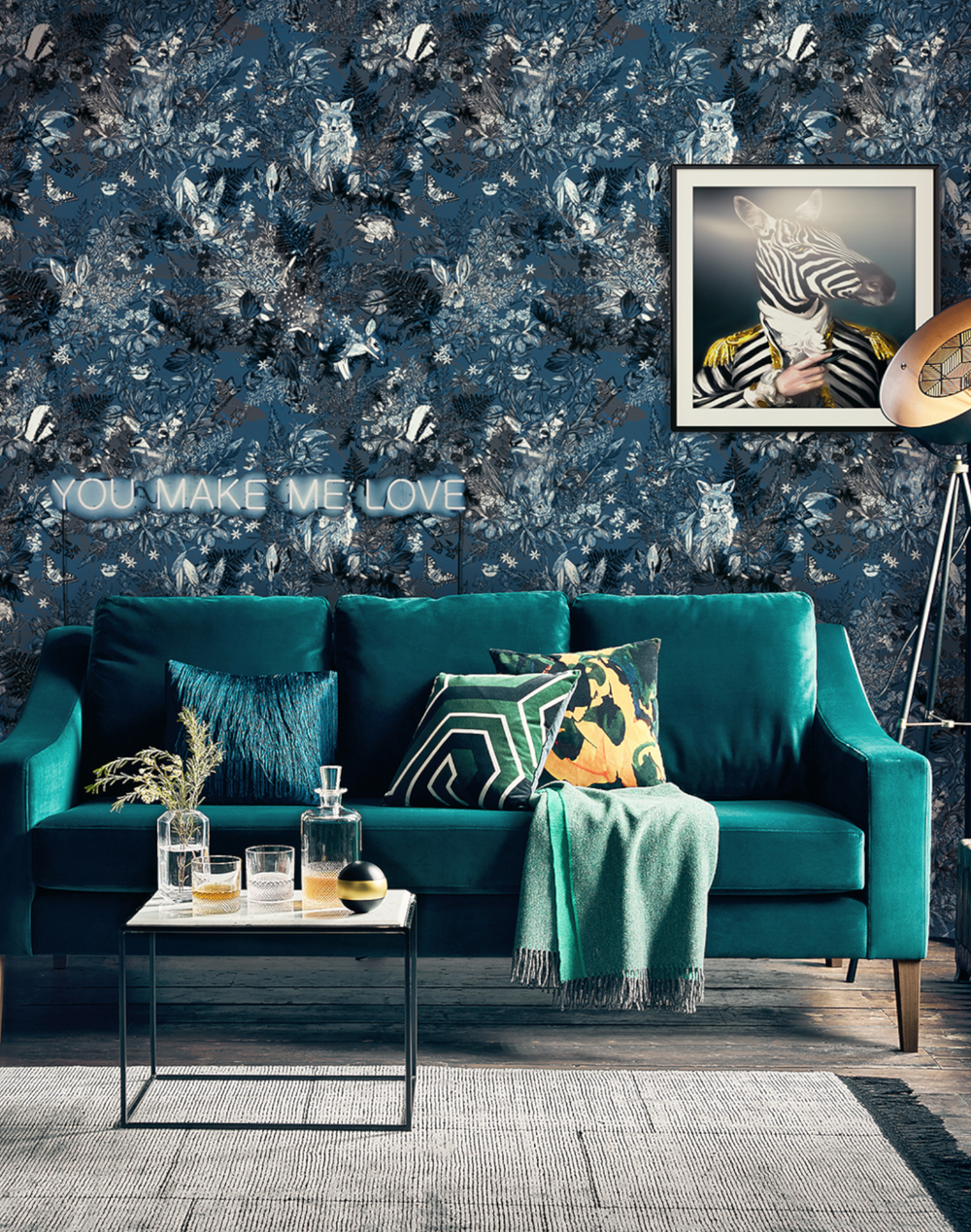 This collection features our intricate hand drawn botanicals in an array of deep botanical greens to immerse you in a biophilic wonderland, interspersed with woodland creatures for a wild interior vibe. This design collection focuses on the harmony of bringing the outside into your interior space and the health benefits that it brings. The collection makes a stylish statement to your interior.